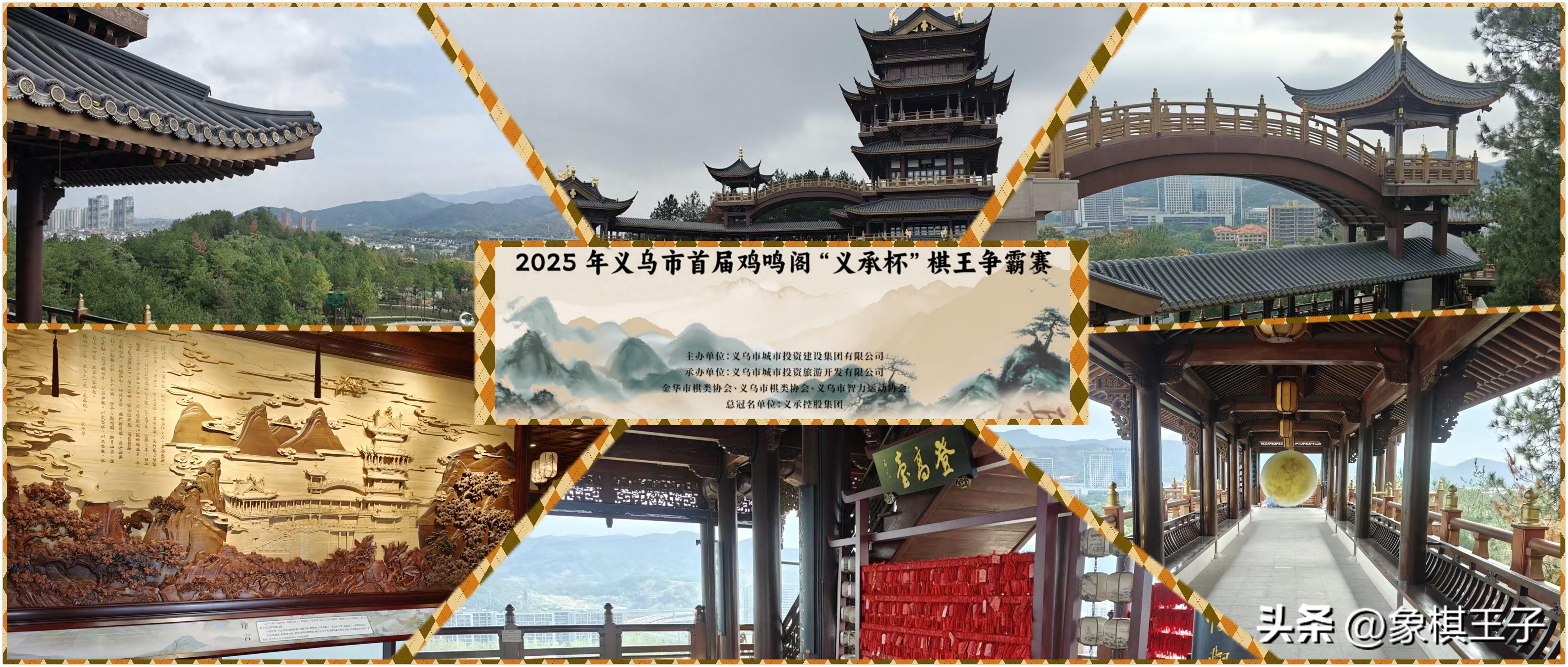 在世界小商品之都,義烏主城區標誌性景觀建築,義烏市雞鳴山公園中雞鳴閣上舉行的2025年義烏市首屆雞鳴閣“義承杯”棋王爭霸賽。