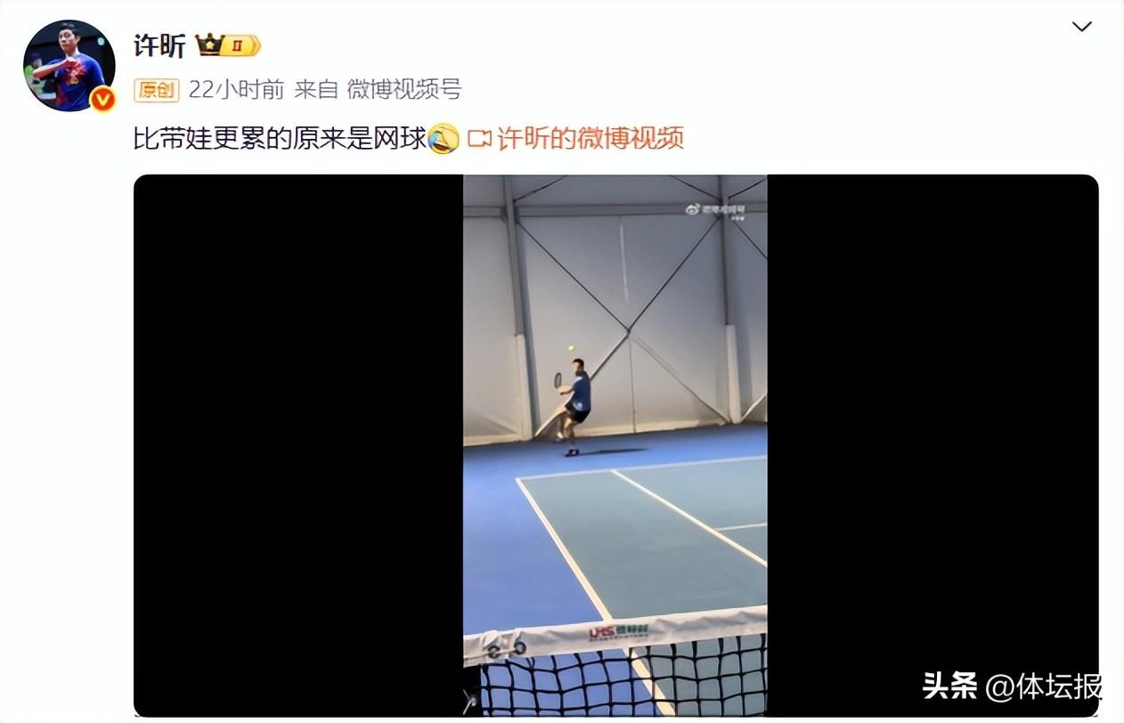 還曬出了打網球的視頻