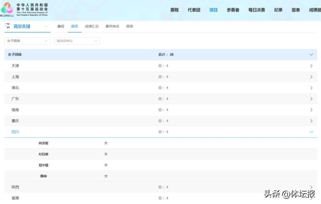 第十五屆全運會高爾夫女子團體賽四川隊報名名單