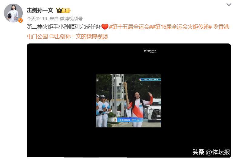與他交接的第二棒火炬手是東京奧運會擊劍冠軍孫一文,她在社媒上分享了作爲火炬手的喜悅。