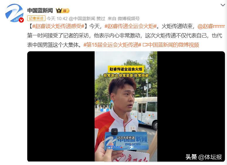 第9棒火炬手是中國男籃隊長趙睿,本屆全運會代表廣東隊參加籃球男子成年組的角逐。火炬傳遞結束後,趙睿表示:“心情還是非常激動的,這次火炬傳遞我不僅僅代表個人,而且也代表了中國男籃這個大集體,還是非常榮幸的。”他希望全力以赴打好全運會比賽,爭取奪金。