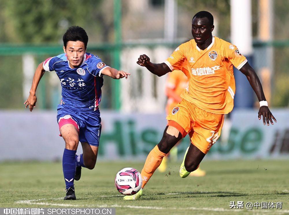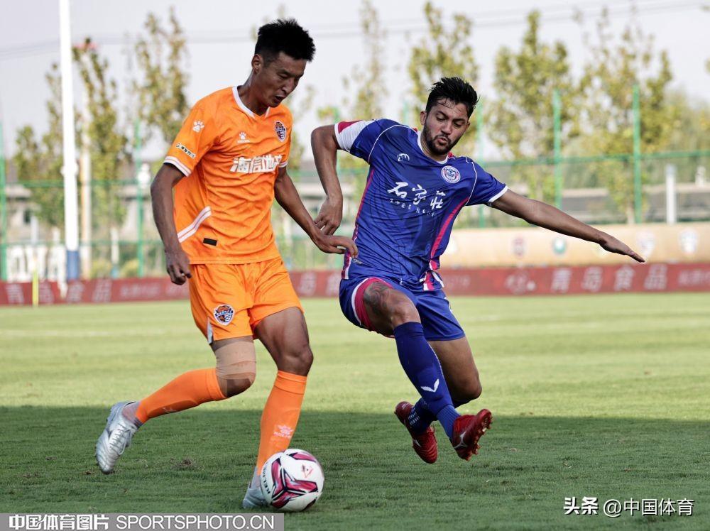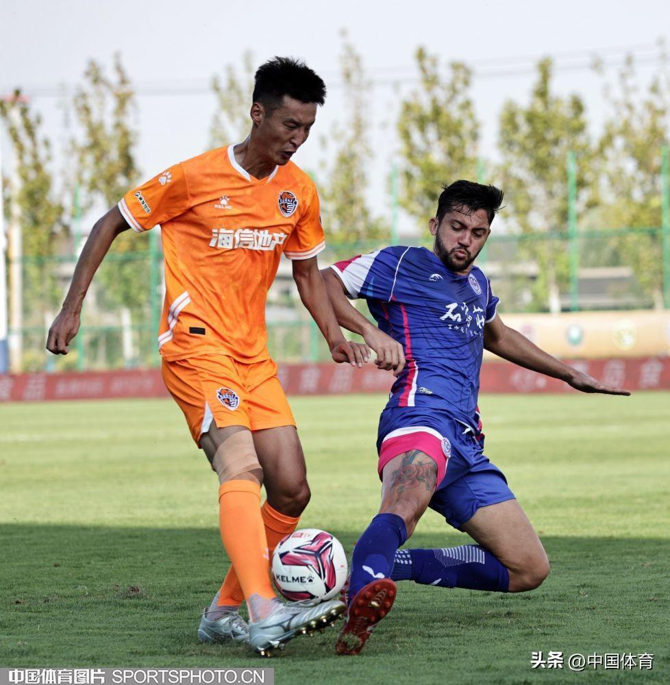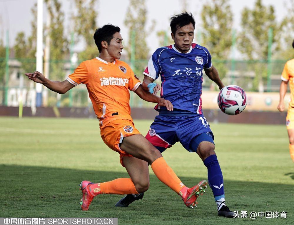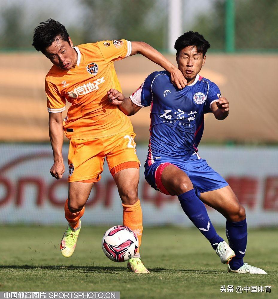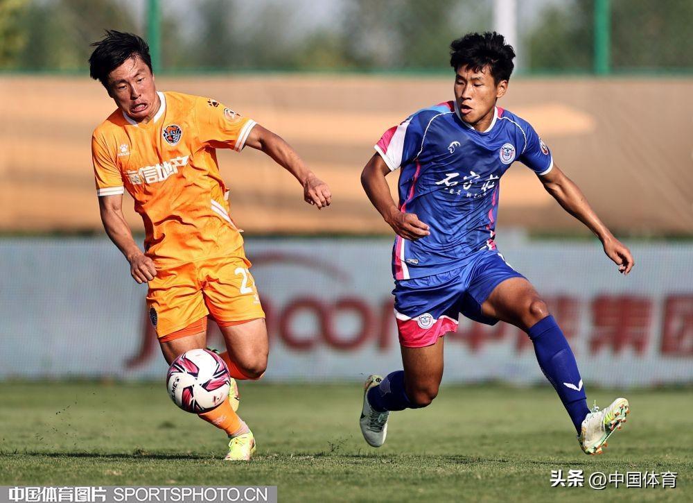 中國體育訊 9月15日,在2022年中國足球協會甲級聯賽第二十一輪(唐山賽區)的一場比賽中,青島海牛隊(橙衣)以0比1負於石家莊功夫隊(藍衣)。(完)