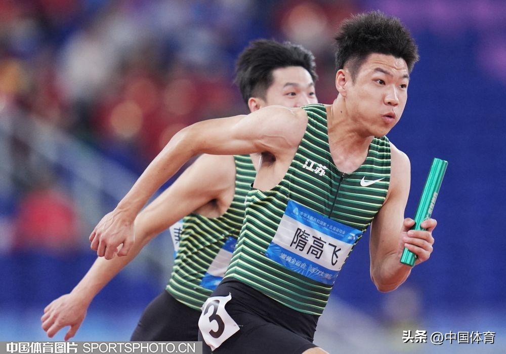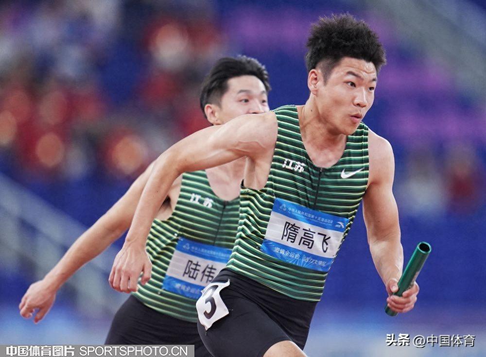 中國體育訊 11月16日晚,第十五屆全運會4x100米混合接力重賽在廣東省奧體中心體育場進行。由談夢怡、袁琦琦、陸偉一、隋高飛組成的江蘇隊跑出41秒09的成績,位列第五位。在15日比賽後,江蘇隊提出申訴,獲得重賽機會。(中國體育圖片 魏徵 攝)隋高飛在比賽中隋高飛在比賽中陸偉一和隋高飛交接棒陸偉一和隋高飛交接棒