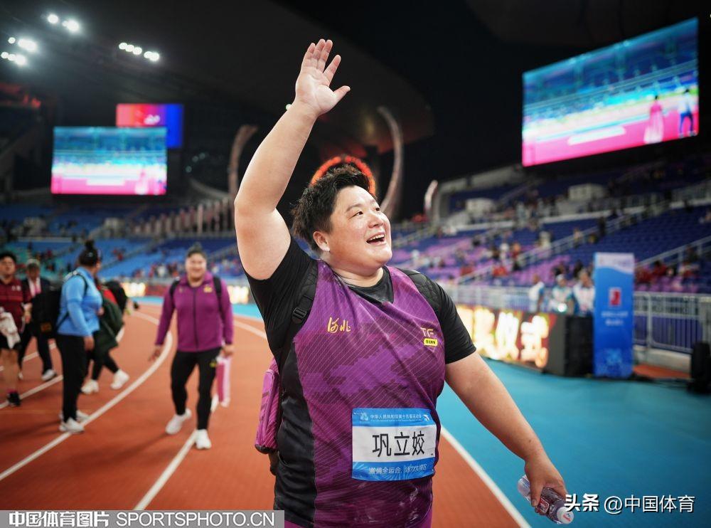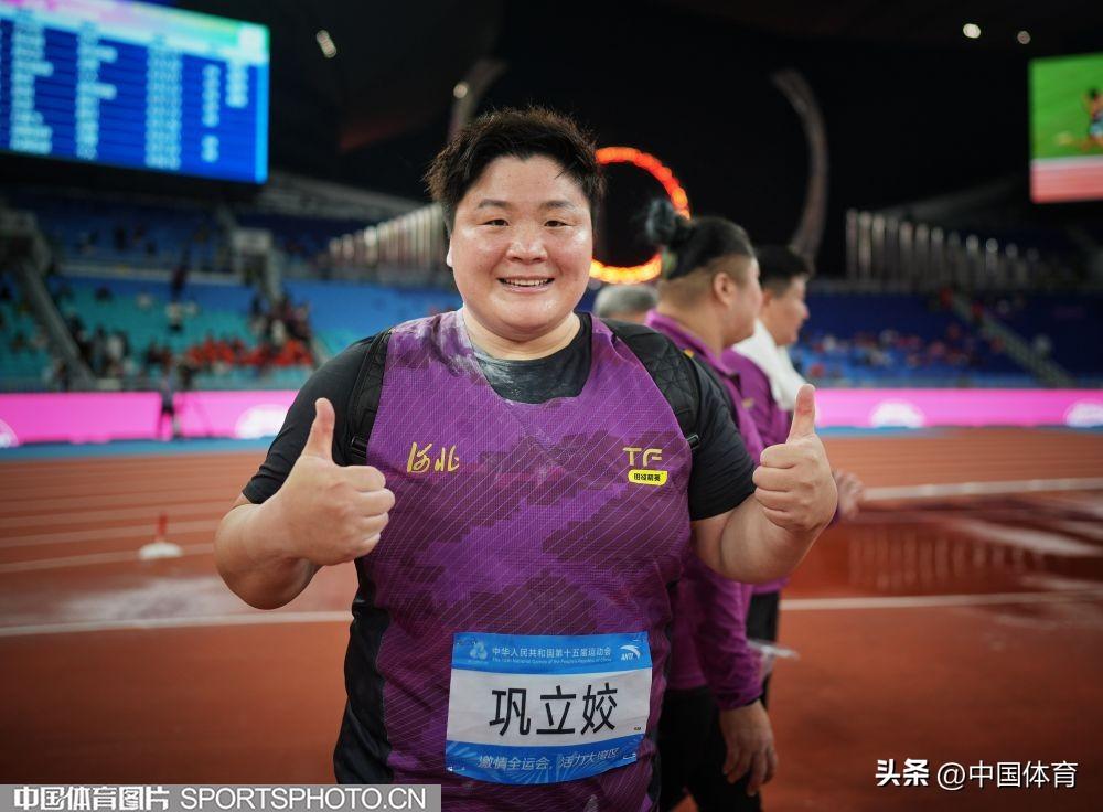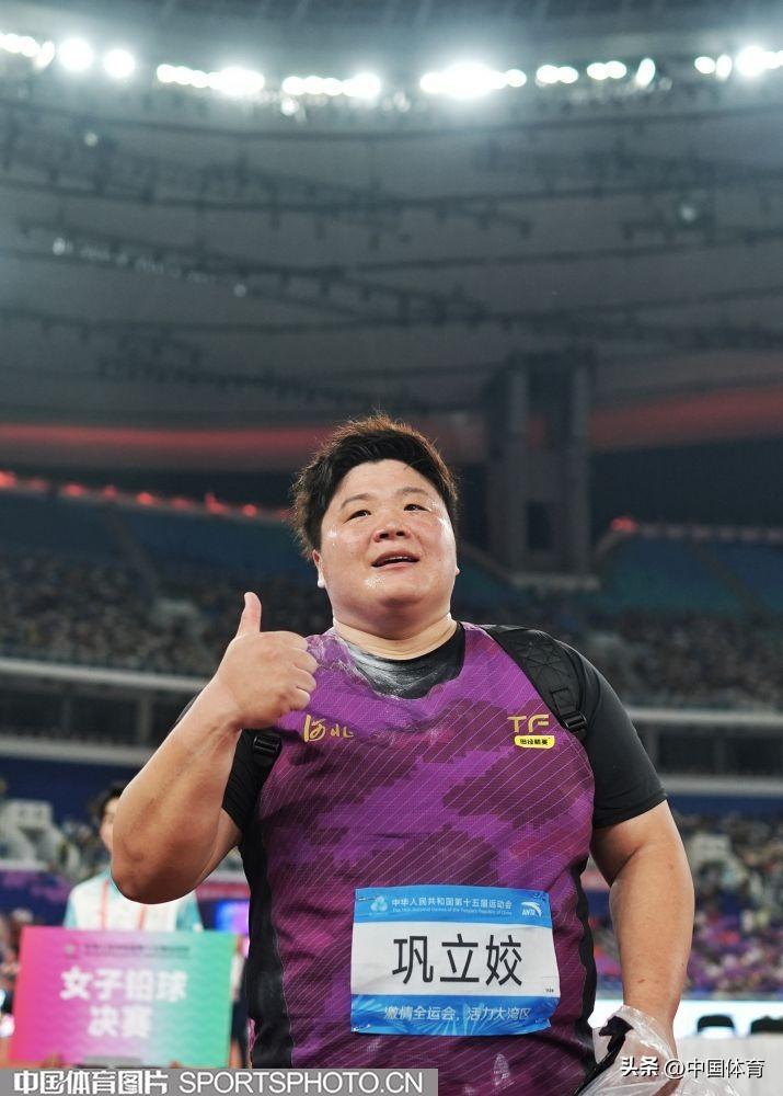 中國體育訊 11月16日晚,第十五屆全運會田徑女子鉛球決賽在廣東省奧體中心體育場進行。河北隊展現出雄厚的整體實力,包攬前三名。其中36歲老將、東京奧運會冠軍鞏立姣以19米68的成績奪得冠軍,成就全運會“五連冠”壯舉。張林茹和馬越分別獲得亞軍和季軍,成績分別爲19米47和19米33,雙雙創造個人最好成績。圖爲鞏立姣在比賽中。(中國體育圖片 魏徵 攝)