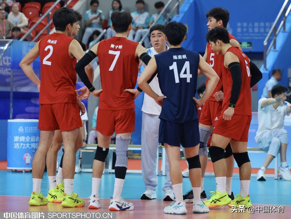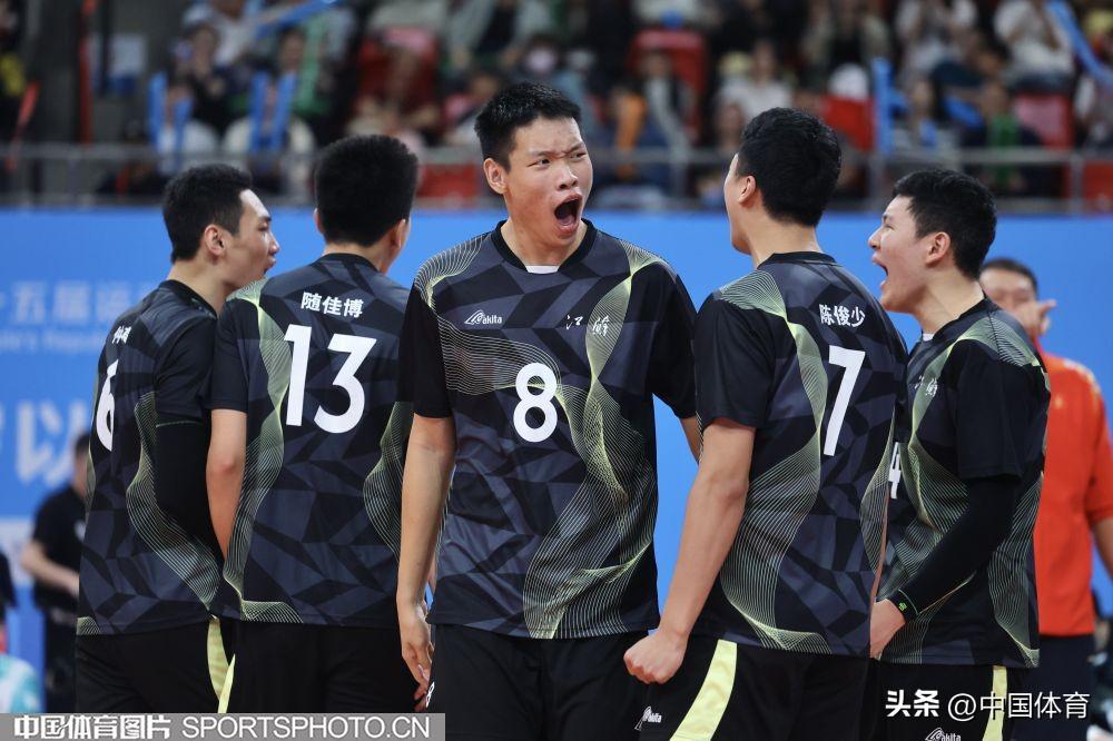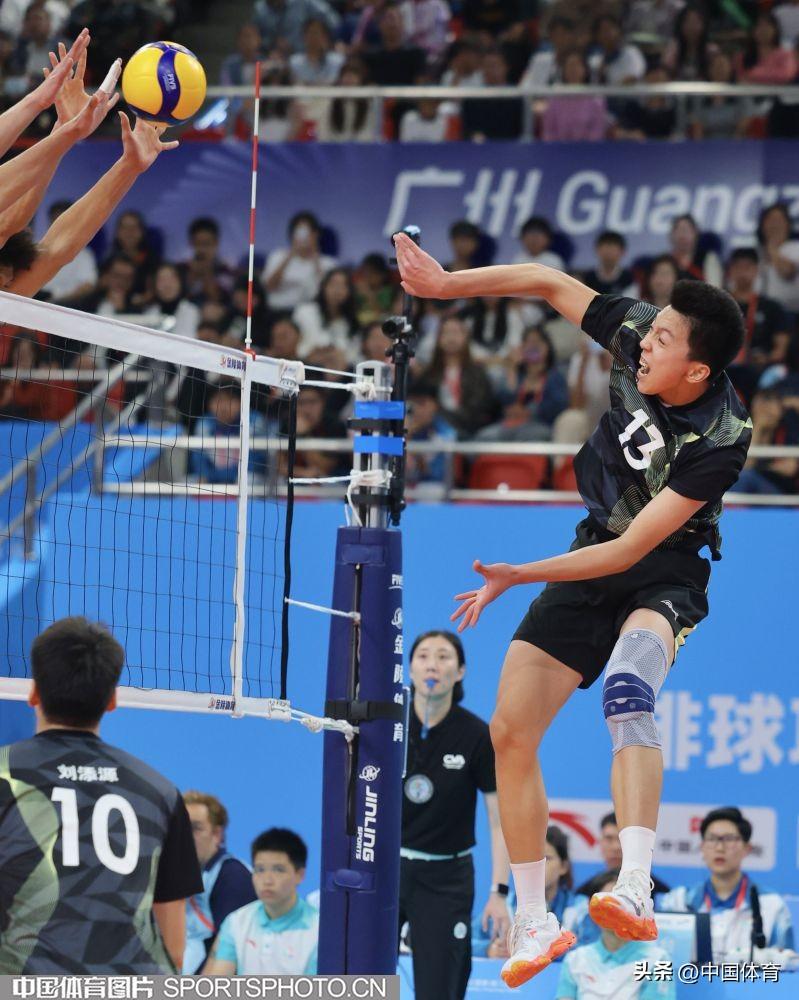 中國體育訊 11月16日晚,第十五屆全運會男子排球18歲以下組決賽在廣州天河體育中心體育館舉行。最終,浙江隊3比0戰勝江蘇隊,奪得金牌。(中國體育圖片 張昕 攝)浙江隊王金柯博發球江蘇隊劉家誠(左)、隨佳博雙人攔網浙江隊張陳鐳(左)、餘翔雙人攔網江蘇隊隨佳博扣球浙江隊宮銘昊扣球江蘇隊隊員慶祝得分浙江隊王金柯博防守起球浙江隊教練宮在峯佈置戰術浙江隊隊員慶祝奪冠頒獎儀式
