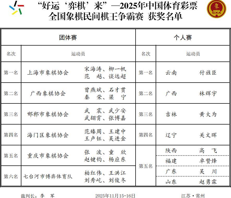 2025民間棋王賽到此收兵,恭祝清華學霸付旌臣勇奪總冠軍,上海隊團體登頂,賀喜優秀獲獎棋手和隊伍,力展綠林風采,業餘風範,民間風姿!