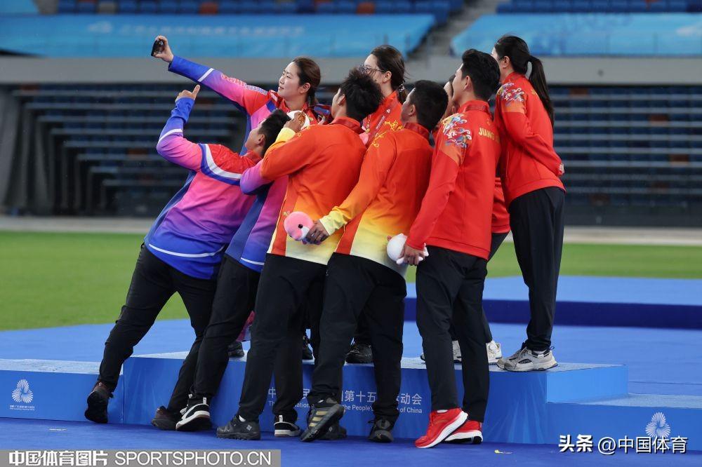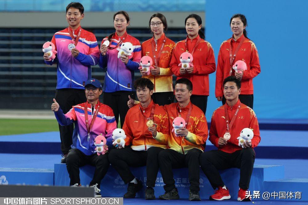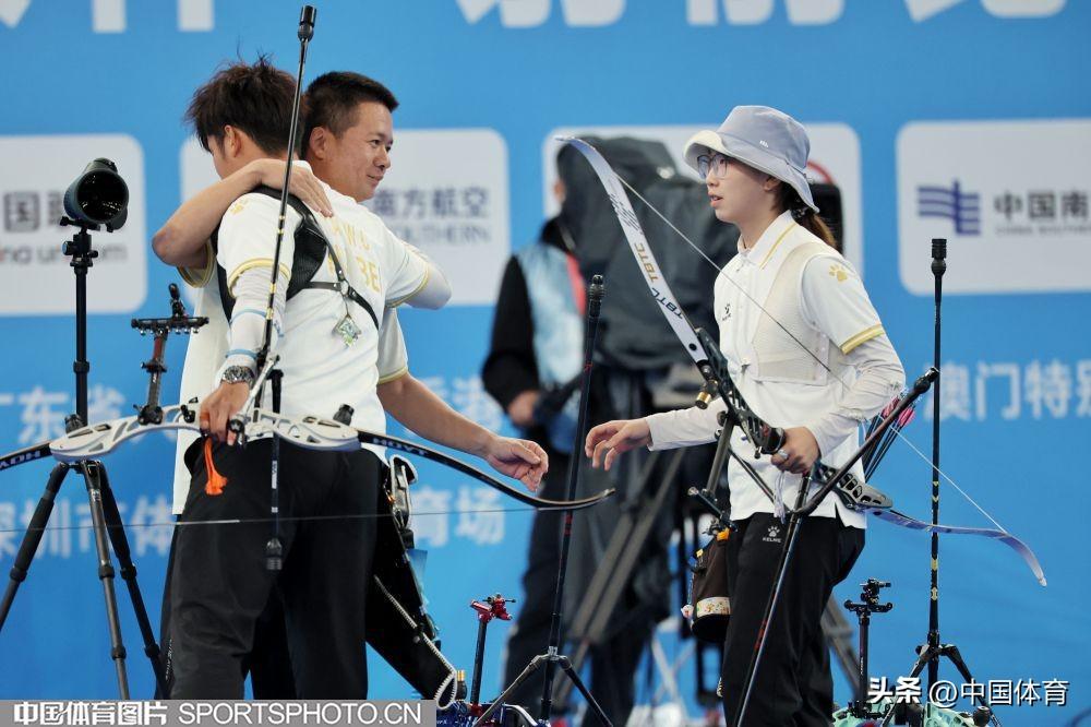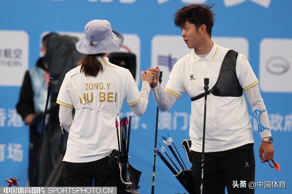 中國體育訊 11月18日,第十五屆全運會射箭項目在深圳市體育中心體育場舉行。在反曲弓混合團體決賽中,湖北隊5比3擊敗上海隊,獲得冠軍。(中國體育圖片 安靈均 攝)湖北隊考文超在比賽中湖北隊考文超在比賽中湖北隊宗鈺在比賽中上海隊慶祝得分上海隊朱靜怡在比賽中湖北隊宗鈺(右)、考文超在比賽中湖北隊宗鈺(左)、考文超在比賽中湖北隊宗鈺(左)、考文超(中)在頒獎儀式上頒獎儀式獲獎隊伍自拍留念