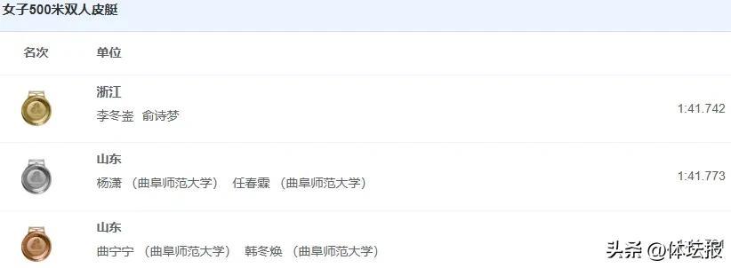 值得一提的是,今天的雙人皮艇項目冠軍中有一對夫妻:王叢康和李冬崟。他們曾在亞運會一人收穫兩金,被網友稱爲“破浪夫婦”。兩人在上屆全運會就有不錯的表現,王叢康男子1000米雙人皮艇、男子500米四人皮艇冠軍,李冬崟是女子500米四人皮艇金牌得主。近兩年,兩人在皮劃艇靜水世界盃、全國皮劃艇靜水冠軍賽上都有所斬獲。是夫妻也是隊友,二人共同進步,攜手爲國爭光。