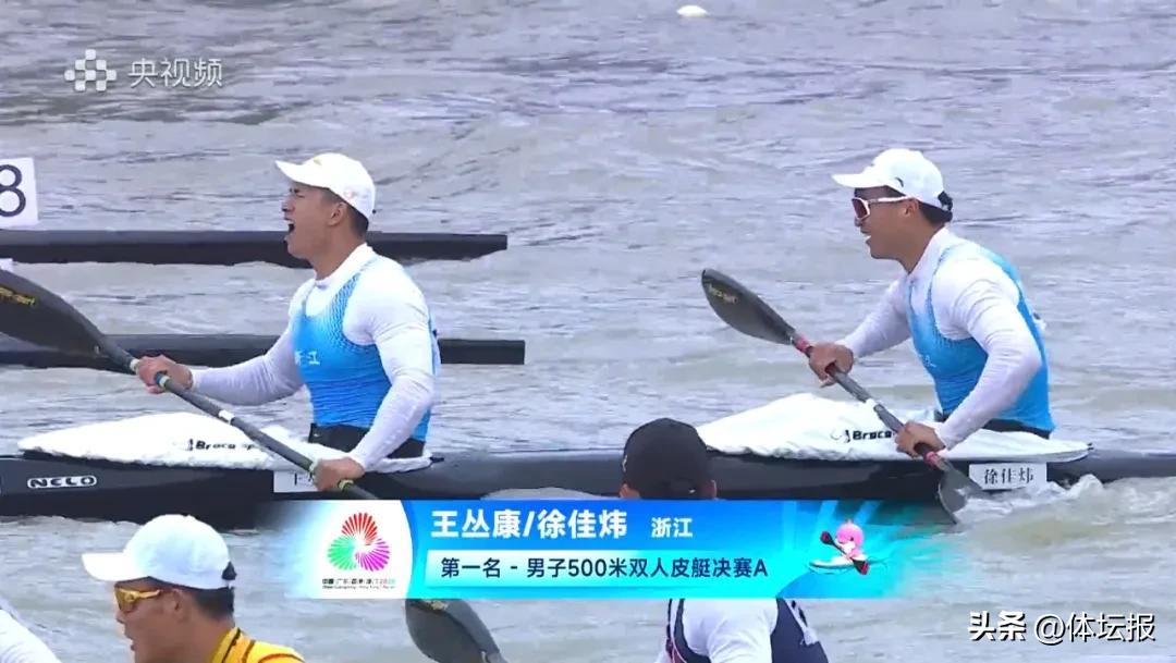上午首先進行的男子500米雙人皮艇決賽上,王叢康/徐佳煒上演逆襲好戲。從比賽分段成績來看,二人在250米分段時暫列第3,憑藉後半程的強勢衝刺實現反超,衝到第1。
