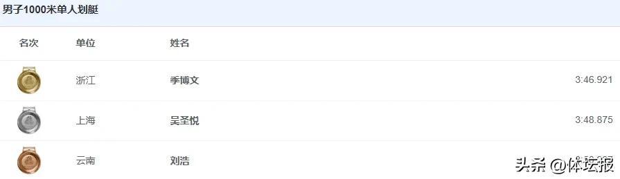 男子1000米單人划艇決賽中,季博文延續強勢表現,全程領跑,以3分46秒921的絕對優勢奪冠。