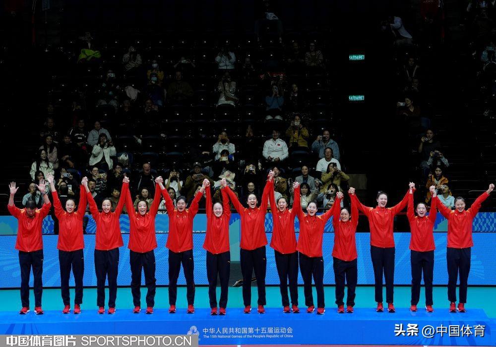 中國體育訊 11月19日晚,第十五屆全運會女子排球成年組決賽在澳門威尼斯人綜藝館舉行。江蘇隊3比0戰勝山東隊,獲得冠軍。(中國體育圖片 倪敏哲 攝)