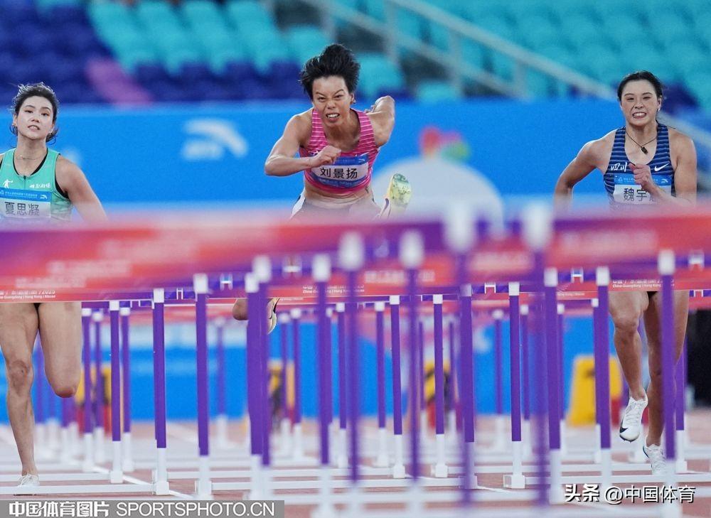 中國體育訊 11月19日,第十五屆全運會田徑女子100米欄決賽在廣東省奧體中心體育場進行。廣東隊劉景揚以12.81秒的個人最好成績奪得冠軍,四川隊吳豔妮以12.85秒的個人賽季最好成績獲得亞軍,福建隊林雨薇以12.94秒獲得季軍,同樣創造了個人賽季最好成績。(中國體育圖片 魏徵 攝)廣東隊劉景揚(右)在比賽中廣東隊劉景揚(中)在比賽中四川隊吳豔妮(左)在比賽中四川隊吳豔妮(左)在比賽中廣東隊劉景揚慶祝奪冠廣東隊劉景揚慶祝奪冠參賽隊員合影留念廣東隊劉景揚與家人慶祝奪冠