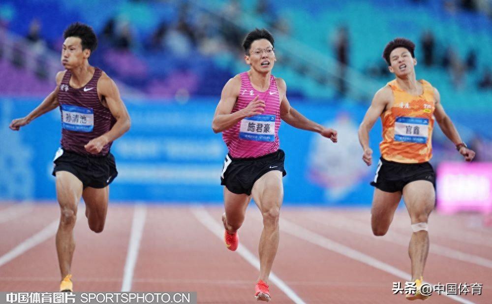 中國體育訊 11月19日晚,第十五屆全運會田徑男子200米決賽在廣東省奧體中心體育場進行。廣東隊施君豪以20.30秒的成績奪冠,另一名廣東選手林健豪以20.57秒的成績獲得亞軍,重慶隊官鑫以20.63秒的成績獲得季軍。浙江隊謝震業以20.98秒的成績排名第七位。(中國體育圖片 魏徵 攝)(左起)孫清池、施君豪、官鑫在比賽中施君豪在比賽中施君豪在比賽中施君豪在比賽中謝震業在比賽中謝震業在比賽中