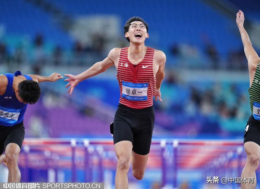 中國體育訊 11月19日晚,第十五屆全運會田徑男子110米欄決賽在廣東省奧體中心體育場進行,上海隊徐卓一以13.12秒的成績獲得冠軍,江蘇隊劉俊茜以13.14秒的成績獲得亞軍,兩人均創造個人最好成績。湖北隊朱勝龍以13.41秒獲得季軍。(中國體育圖片 魏徵 攝)徐卓一(左)在比賽中徐卓一(左)在比賽中徐卓一在比賽中徐卓一慶祝奪冠徐卓一慶祝奪冠徐卓一慶祝奪冠