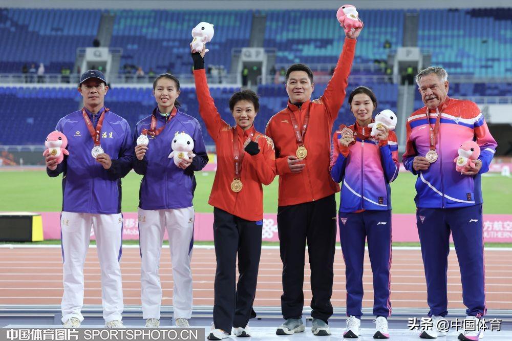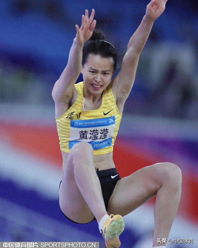 中國體育訊 11月19日晚,第十五屆全運會田徑女子跳遠決賽在廣東省奧體中心體育場進行。江蘇隊談夢怡和福建隊黃瀅瀅同以6.54米結束比賽,因黃瀅瀅第二好成績(6.32米)低於談夢怡(6.46米),最終談夢怡獲得冠軍。上海隊陳麗文以6.39米獲得銅牌。三人均創造了個人賽季最佳成績。(中國體育圖片 張昕 攝)福建隊黃瀅瀅在比賽中頒獎儀式