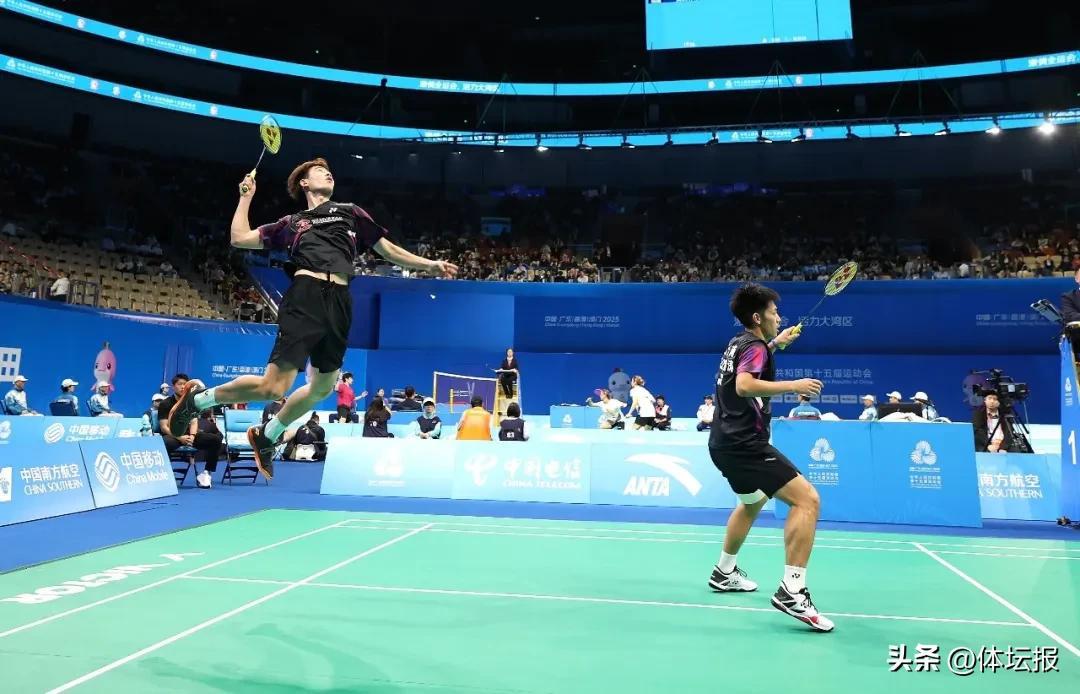劉陽/劉毅(安徽)以21-16 18-21 21-17戰勝王昶/謝浩南(浙江)奪得全運會男雙金牌,王昶/謝浩南獲得男雙銀牌。