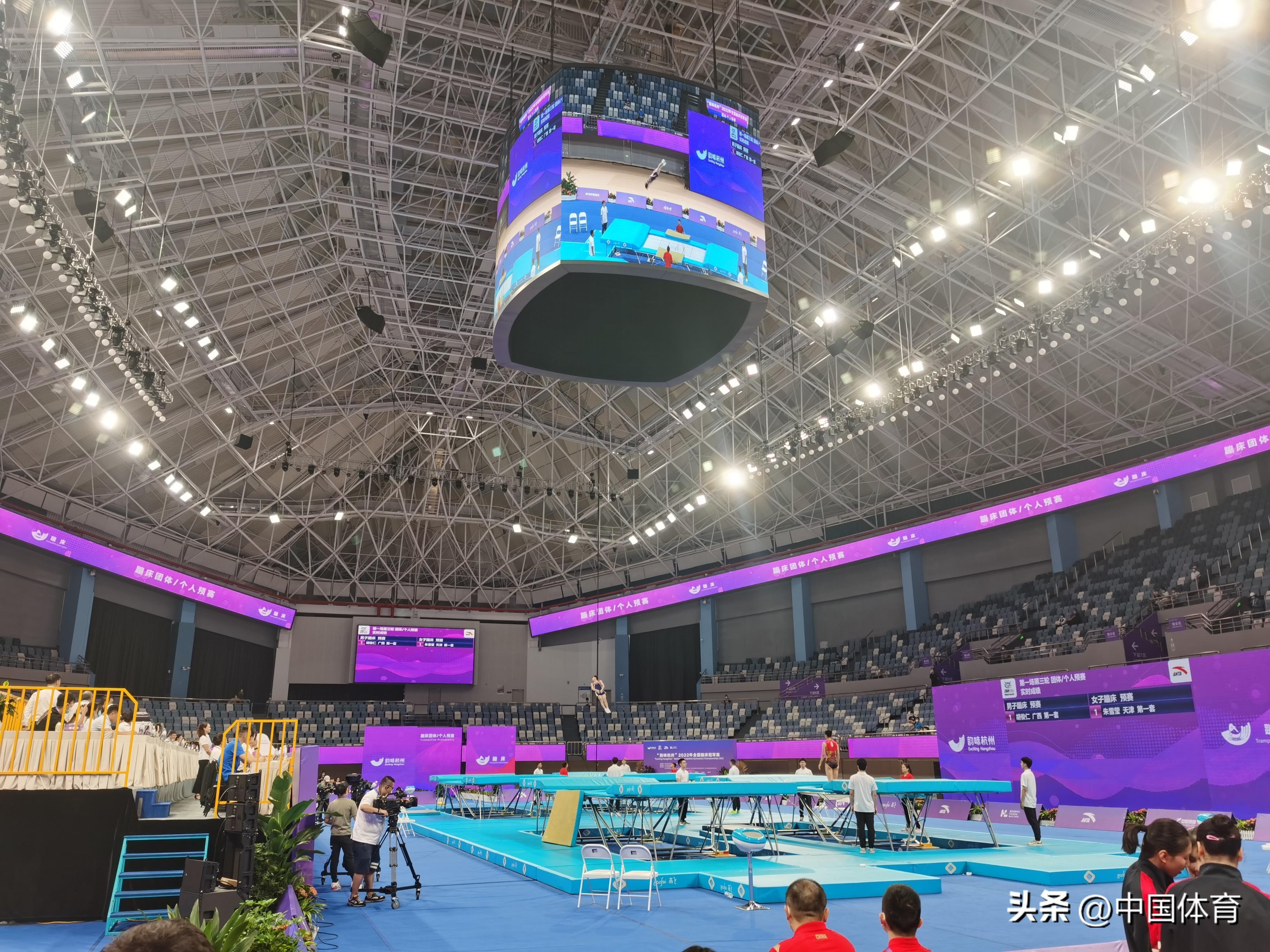 中國體育訊 9月17日,2022年全國蹦牀冠軍賽暨世錦賽選拔賽第二站在浙江省黃龍體育中心開賽。在奧運項目男、女網上個人預賽中,世界冠軍嚴浪宇和奧運冠軍朱雪瑩表現出色,分別以第一名的身份晉級半決賽。