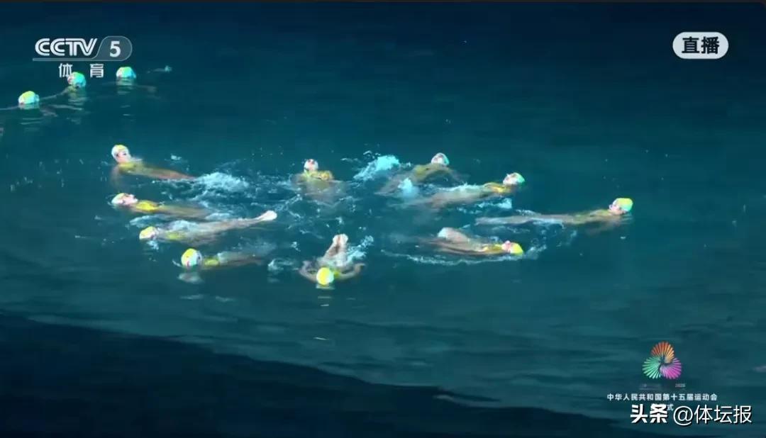 文體展演第四段《巔峯時刻》,舞臺驟然隱入水中,花遊少女如靈魚穿梭,龍舟少年似猛蛟破浪。四層人梯拔地而起,健兒們以血肉之軀託舉起“團結一心,衆志成城”的巍峨意象。