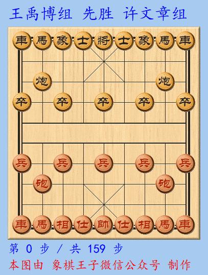 王禹博組全速進攻,一路攻入黑棋後側,黑極力抵擋,頑強糾纏,紅血戰159手,以馬炮兵仕相全對雙馬單缺象,打死馬之力,一舉勝出。