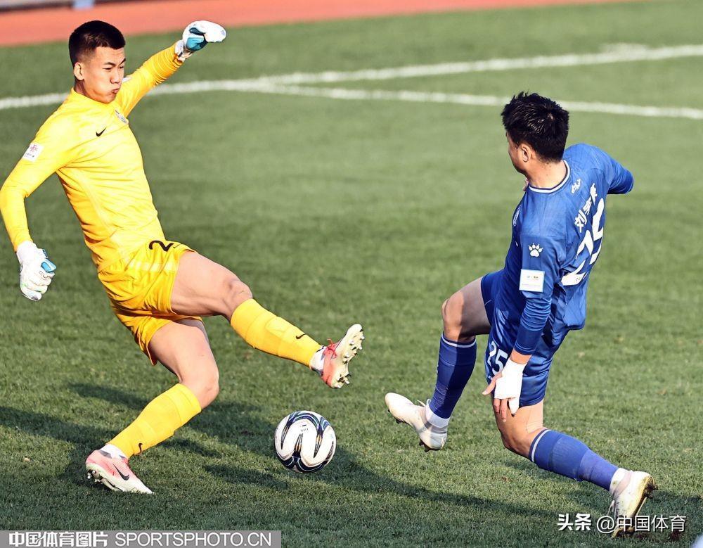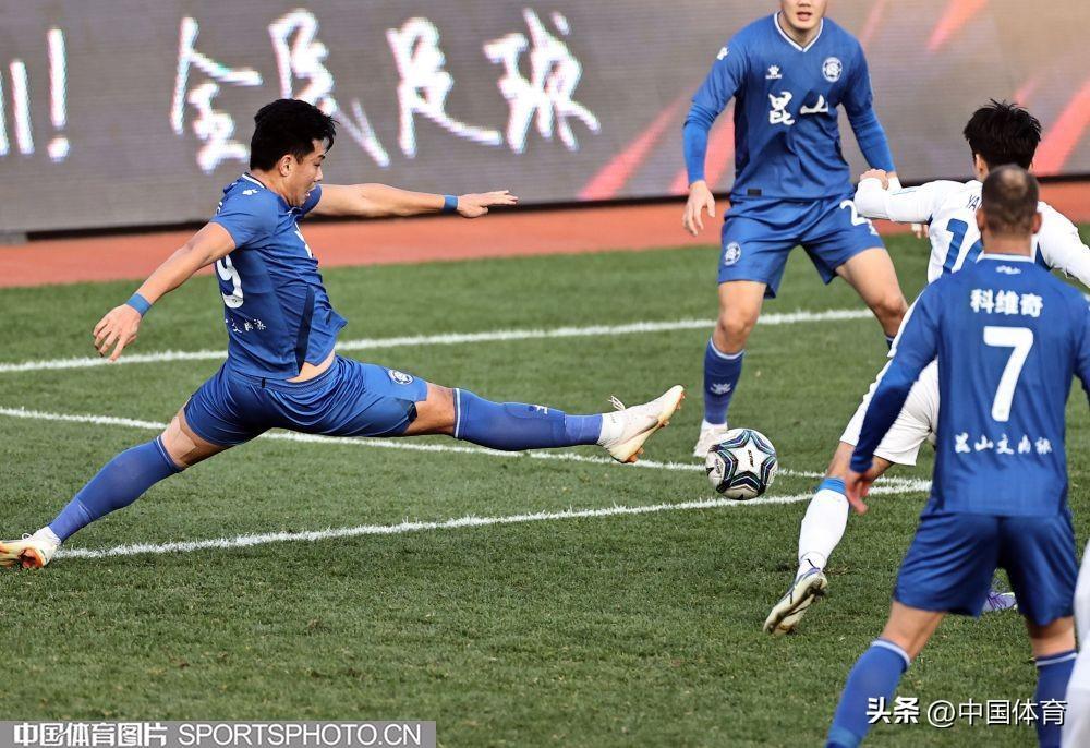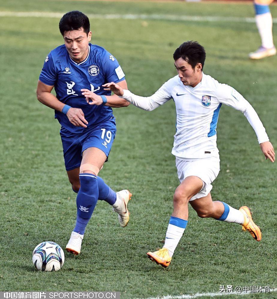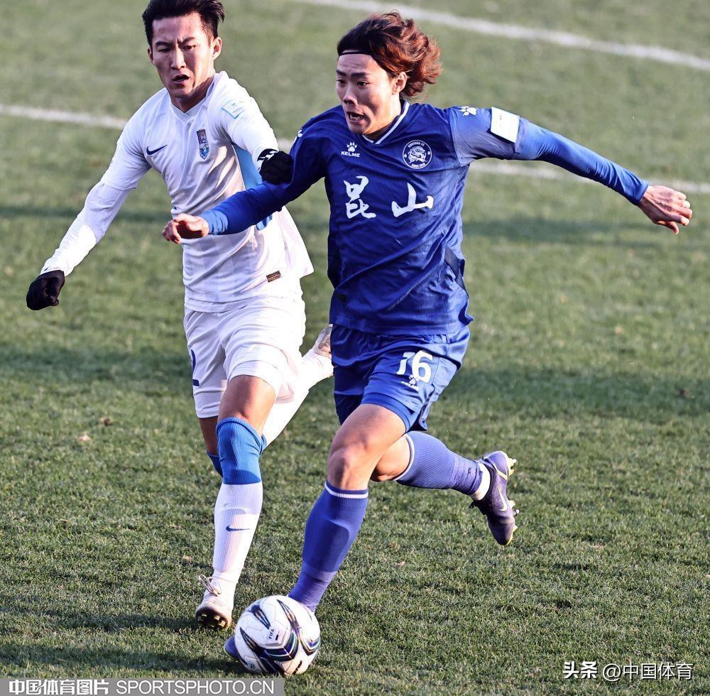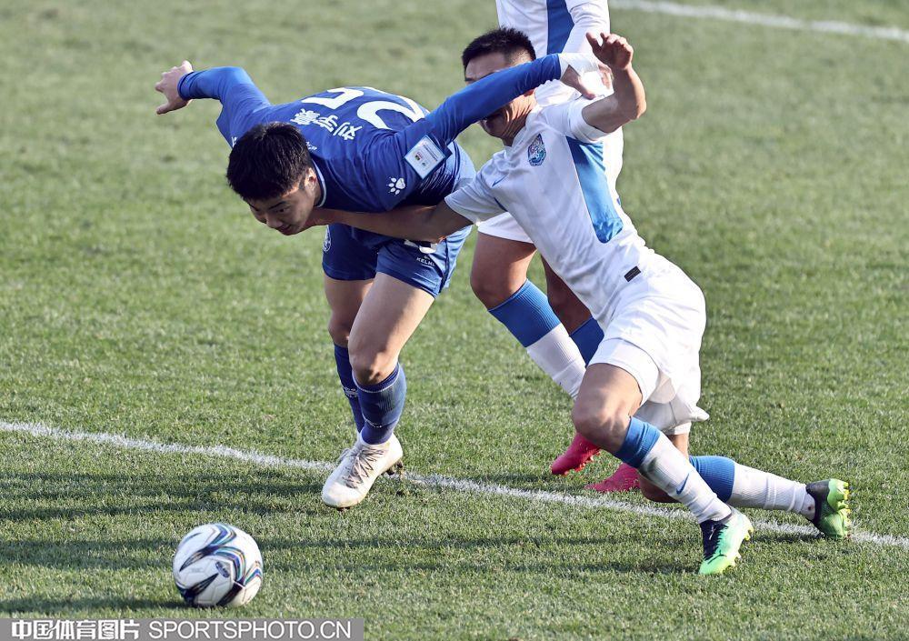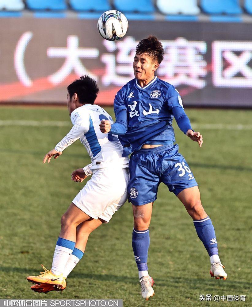 中國體育訊 11月17日,在2022年中國足球協會杯賽第二輪的一場比賽中,崑山隊(藍衣)以0比4負於天津津門虎隊(白衣),後者晉級下一輪。(中國體育圖片 王憲民 攝)