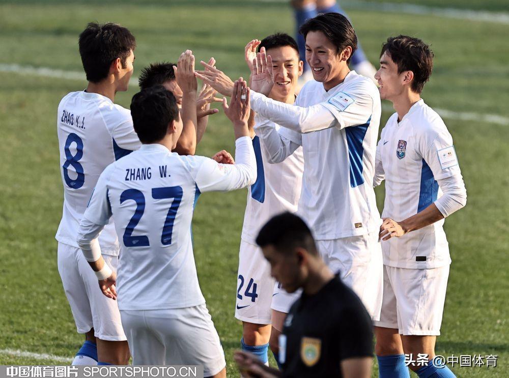 圖爲天津津門虎隊隊員慶祝進球