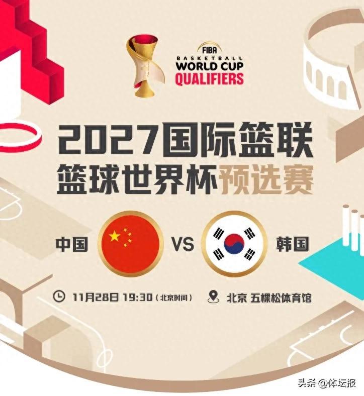 11月28日晚,2027國際籃聯世界盃亞洲區預選賽將展開首輪爭奪,中國男籃將在主場面對老對手韓國隊。