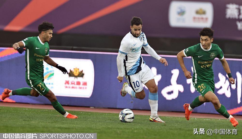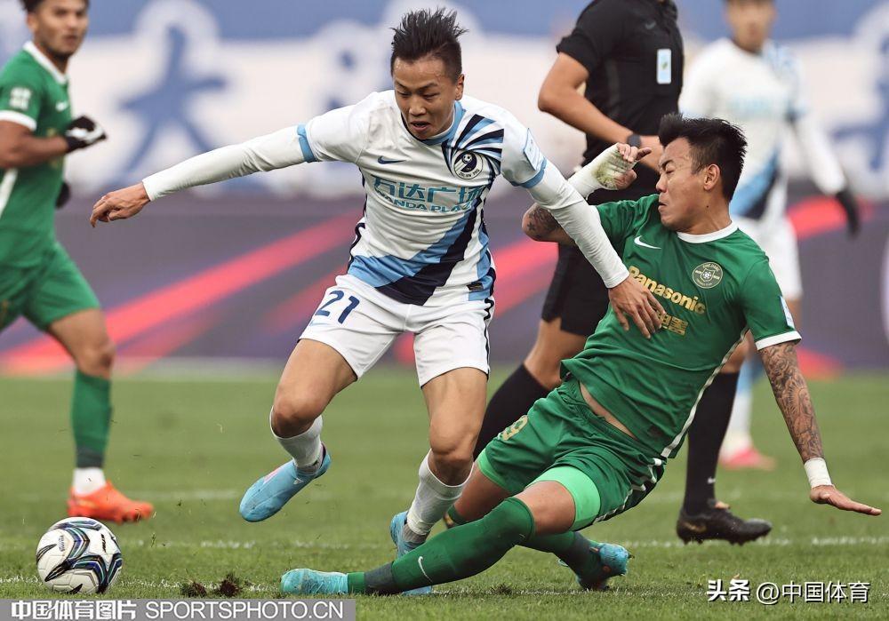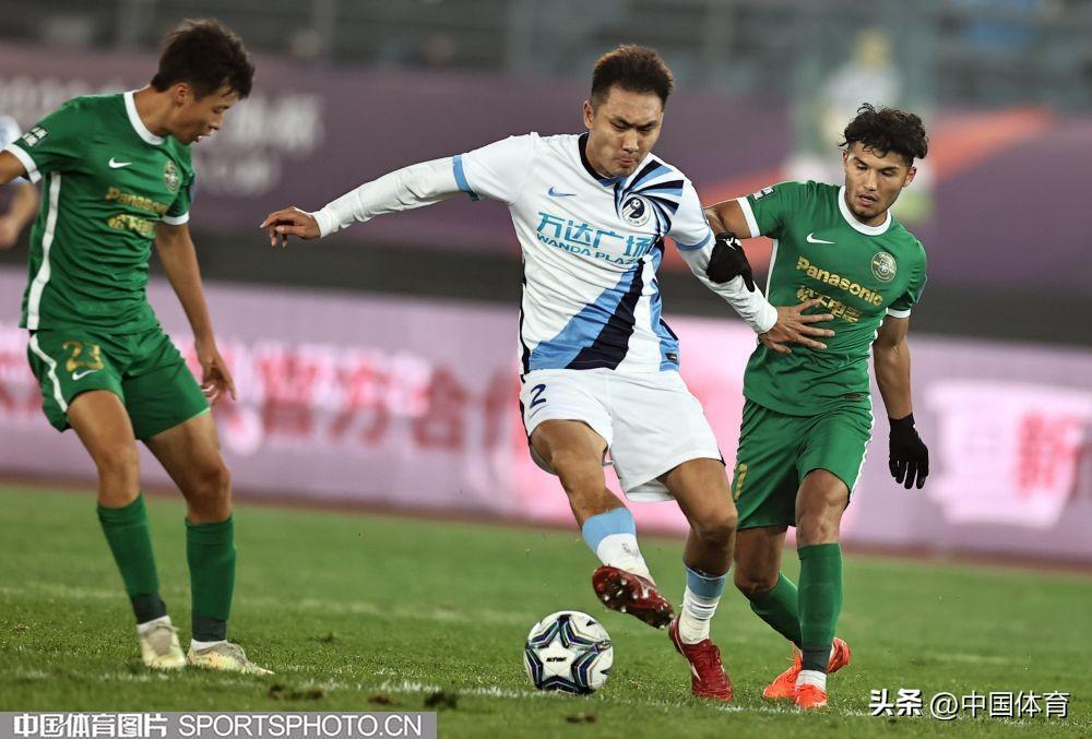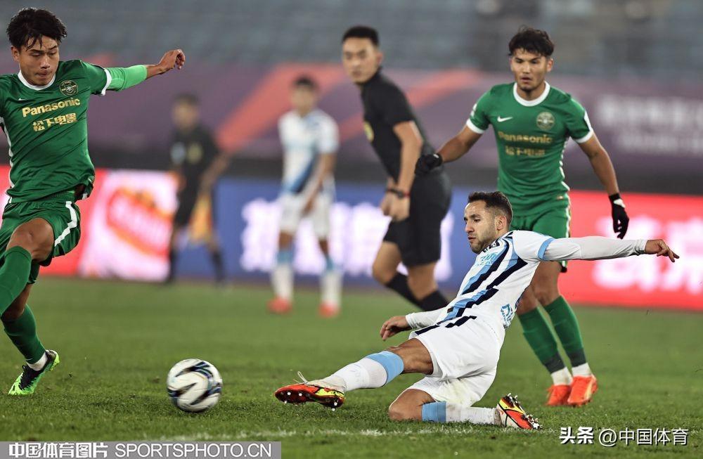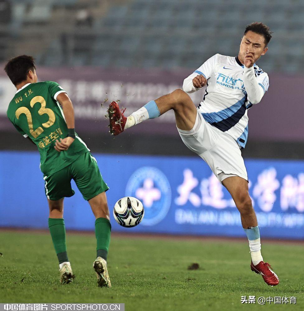 中國體育訊 11月18日,在2022年中國足球協會杯賽第二輪的一場比賽中,主場作戰的大連人隊(白衣)以0比1負於浙江隊(綠衣)被淘汰。(中國體育圖片 王憲民 攝)