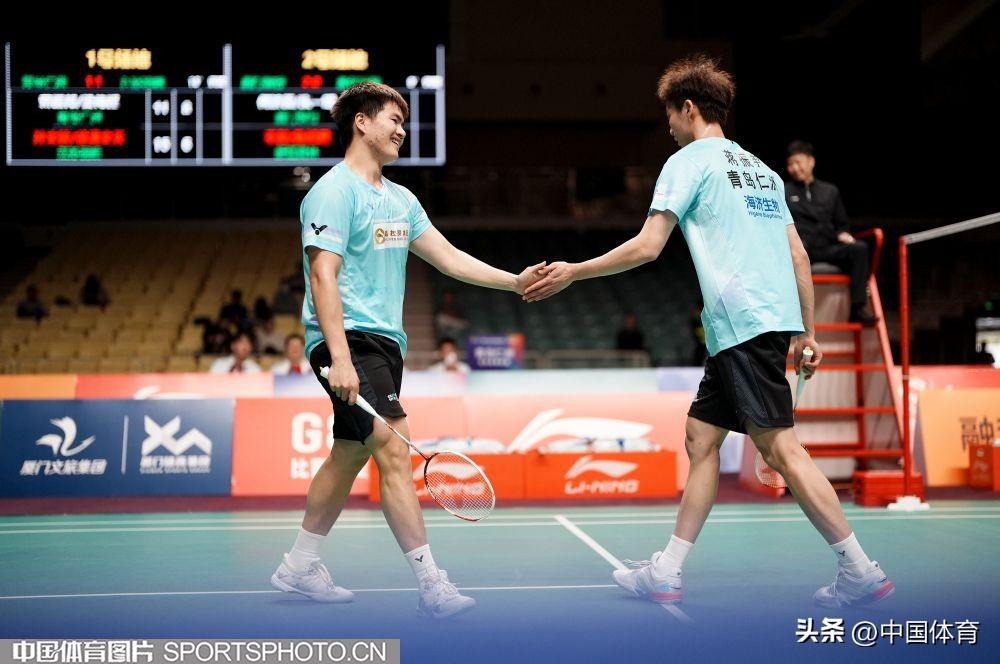 青島仁洲俱樂部選手梁偉鏗(左)/蔣振邦在比賽中