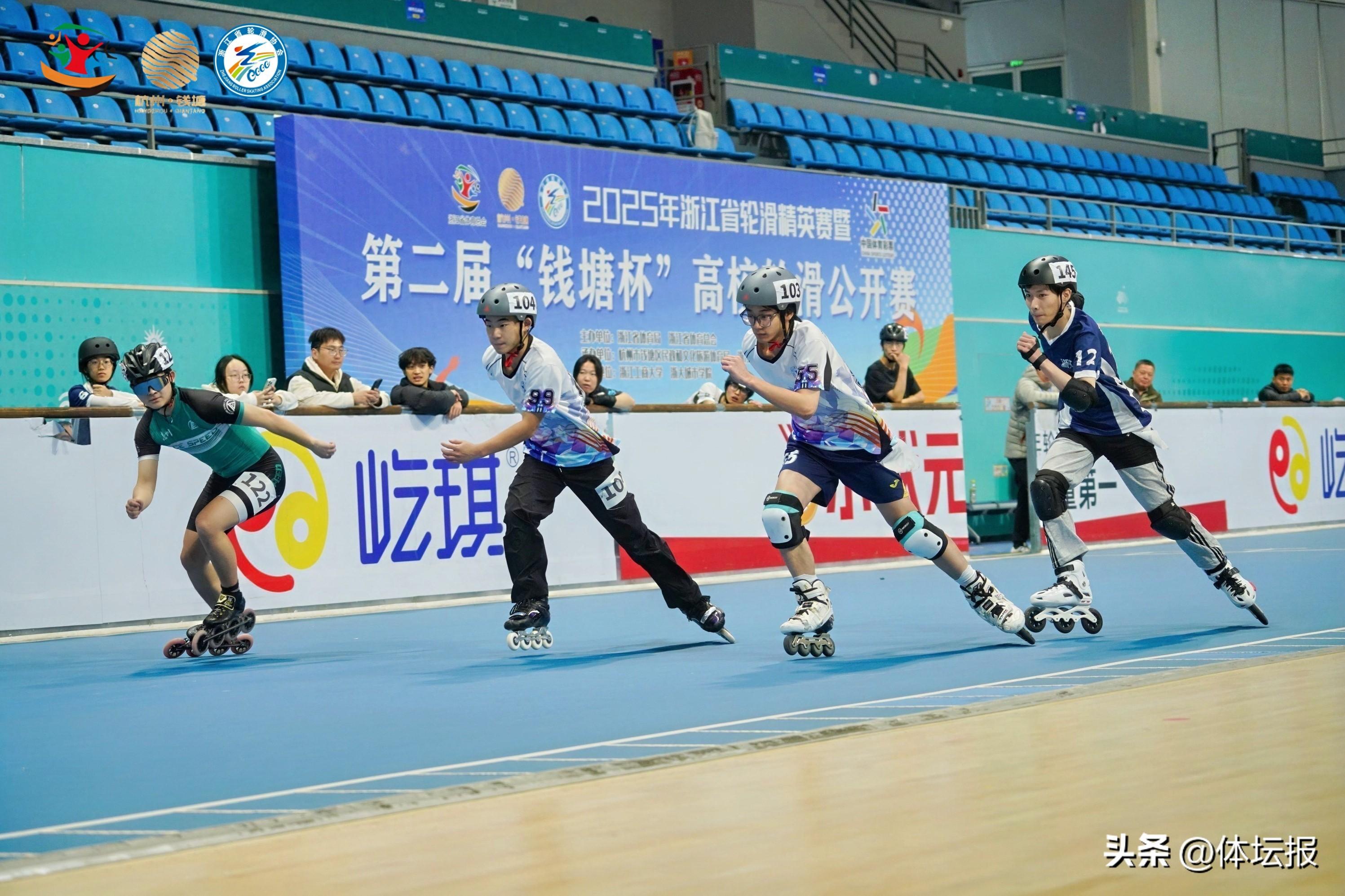 11月30日,爲期兩天的2025年浙江省輪滑精英賽暨“錢塘杯”第二屆高校輪滑公開賽在杭州錢塘輪滑中心順利落下帷幕。本次賽事由浙江省體育局、浙江省體育總會聯合主辦,杭州市錢塘區民政和文化旅遊體育局、浙江省輪滑協會共同承辦,並得到了浙江工商大學、浙大城市學院的協辦。賽事匯聚了來自全省各高校的輪滑精英,23個高校,近500人次的運動隊在輪滑場上揮灑青春汗水,角逐競技桂冠,爲初冬的錢塘江畔注入了澎湃的活力動能。