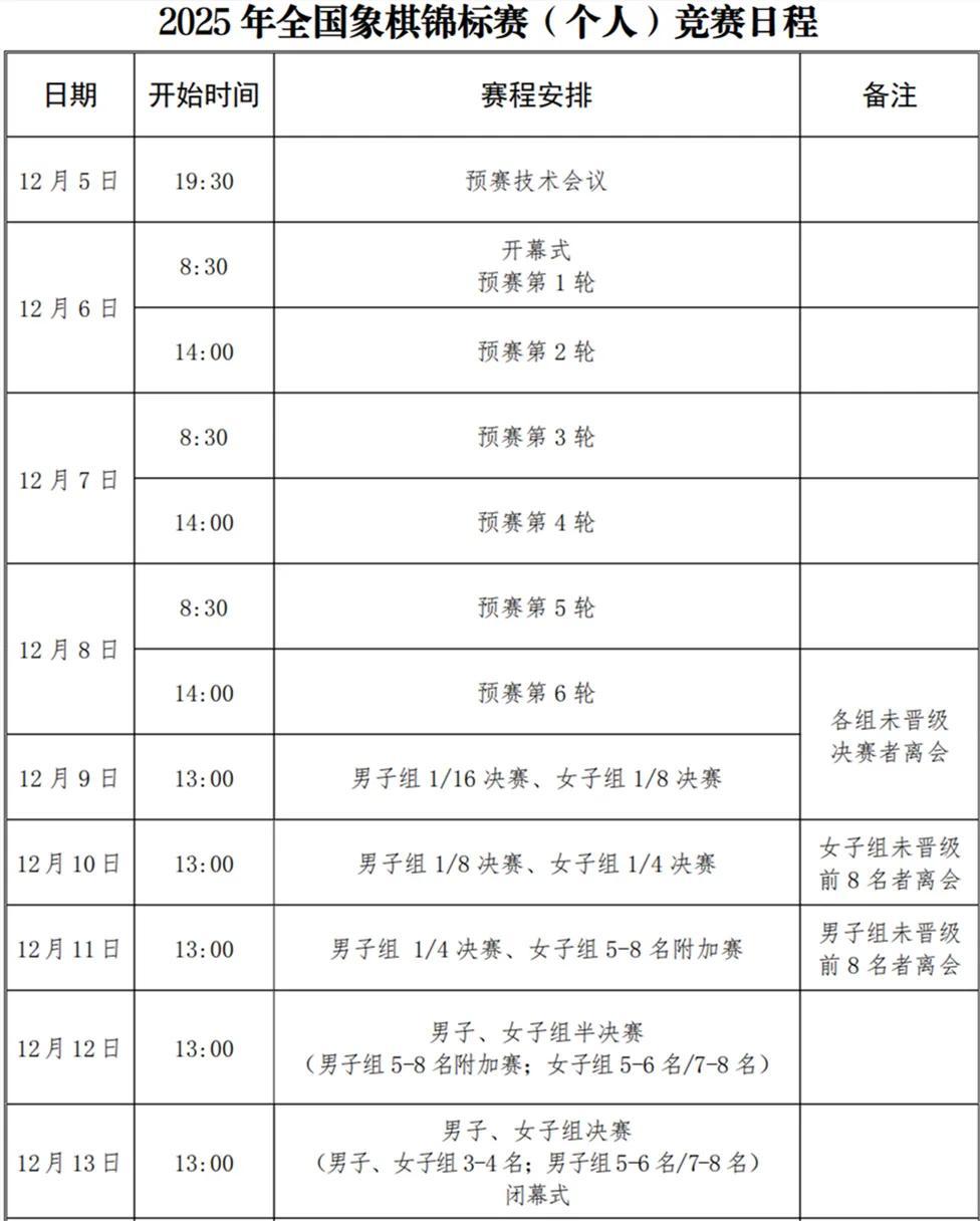 賽會6-8日,每天上午八點半、下午兩點,各一輪小組賽,9-13日,每天下午一點,一輪淘汰戰,一路廝殺,決出總冠軍,象棋王子抖音號全程直播。