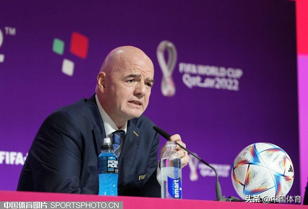 中國體育訊 2022年卡塔爾世界盃將於11月20日開幕,19日,國際足聯主席詹尼·因凡蒂諾出席開幕前的發佈會。圖爲國際足聯主席詹尼·因凡蒂諾在發佈會上。(中國體育圖片 李翔 攝)