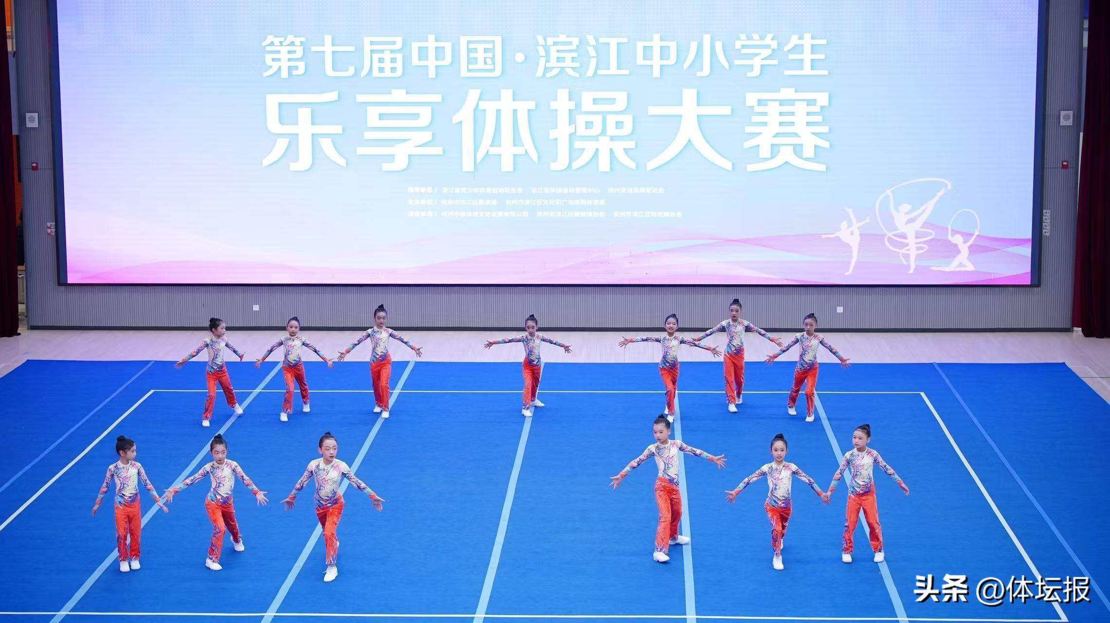 12月5日下午,第七屆中國·濱江中小學生樂享體操大賽在杭州市奧體實驗小學體育館拉開帷幕。來自濱江區26所學校的1010名小選手,組成206支隊伍,在賽場上旋轉、跳躍,展現出青春的活力與風采。