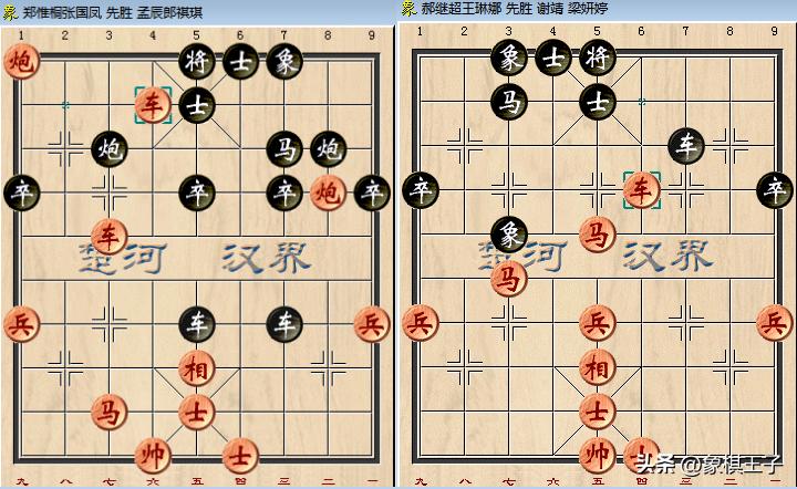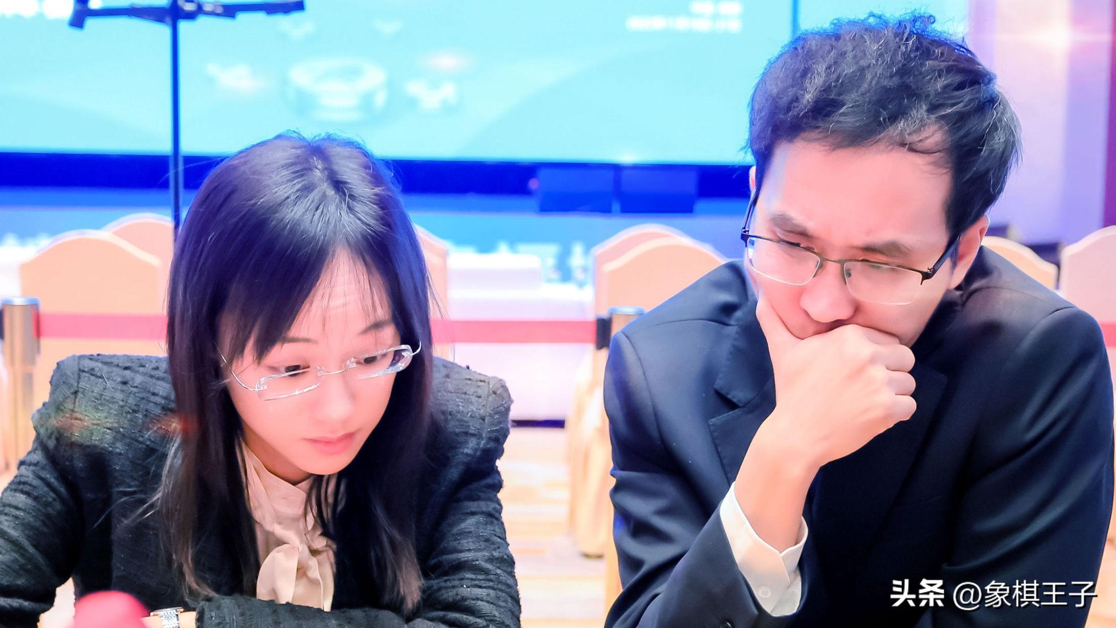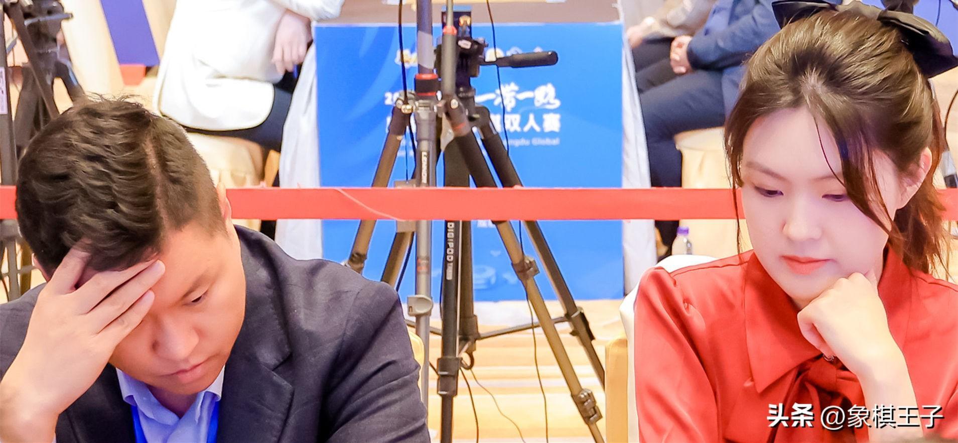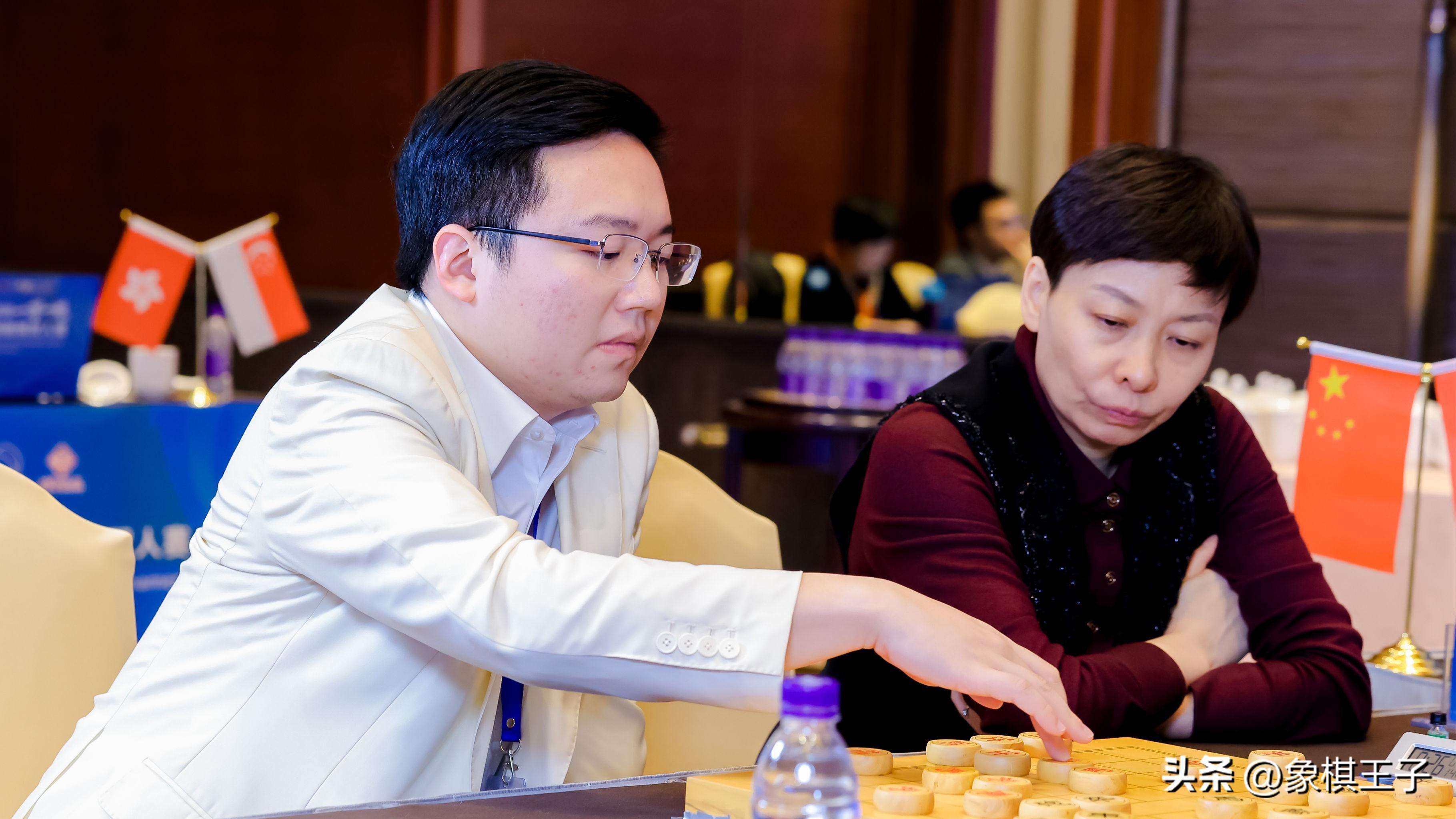 B組郝繼超王琳娜則是殘棋中,車馬局,巧奪對手謝靖梁妍婷一子,成爲贏家,其他戰局和。
