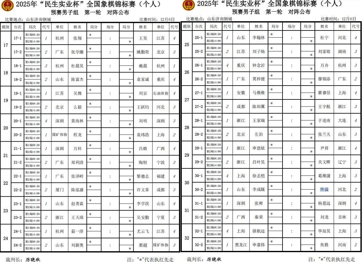 年度象棋壓軸盛會,2025年全國個人賽126男將,56女將,182將鏖戰山東,舉軍會弈,男子孟辰曹巖磊王禹博孟繁睿等火力爭霸,女子超級丹衝擊十冠王,誰能一舉登頂,豪取王冠,強勢奪霸,象棋王子也將進行全程的直播和報道(抖音:象棋王子),與棋友一起共見巔峯盛會,敬請關注、支持、守護,謝謝!