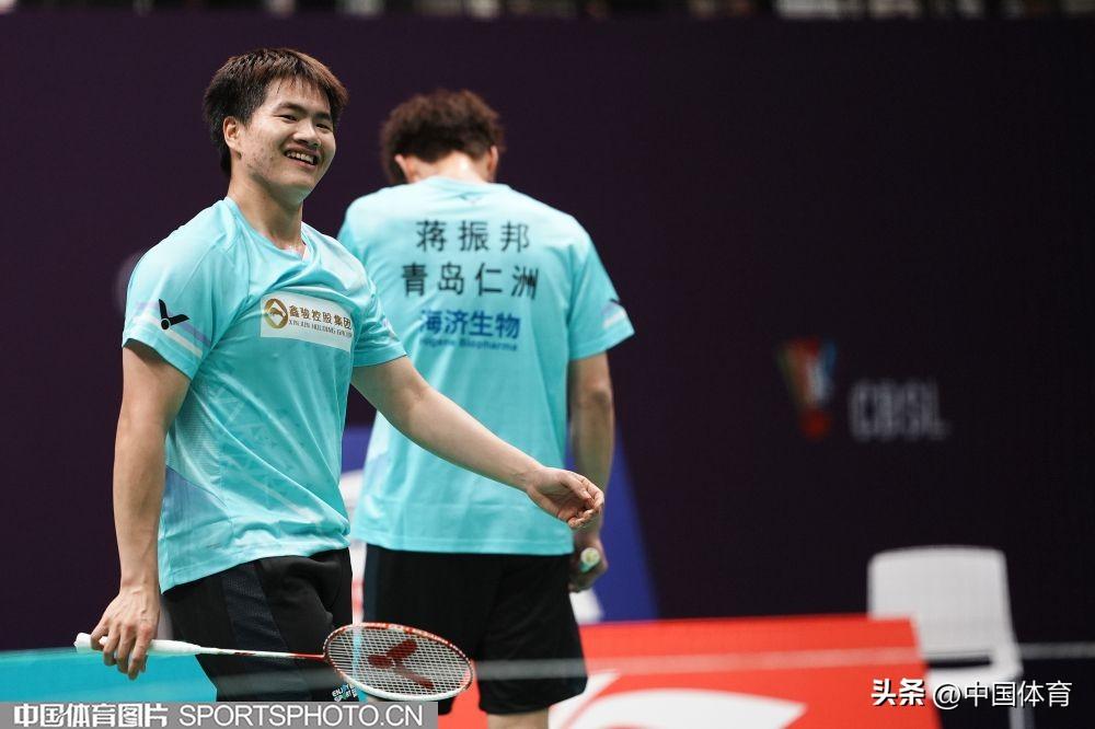 青島仁洲俱樂部選手梁偉鏗/蔣振邦在比賽中