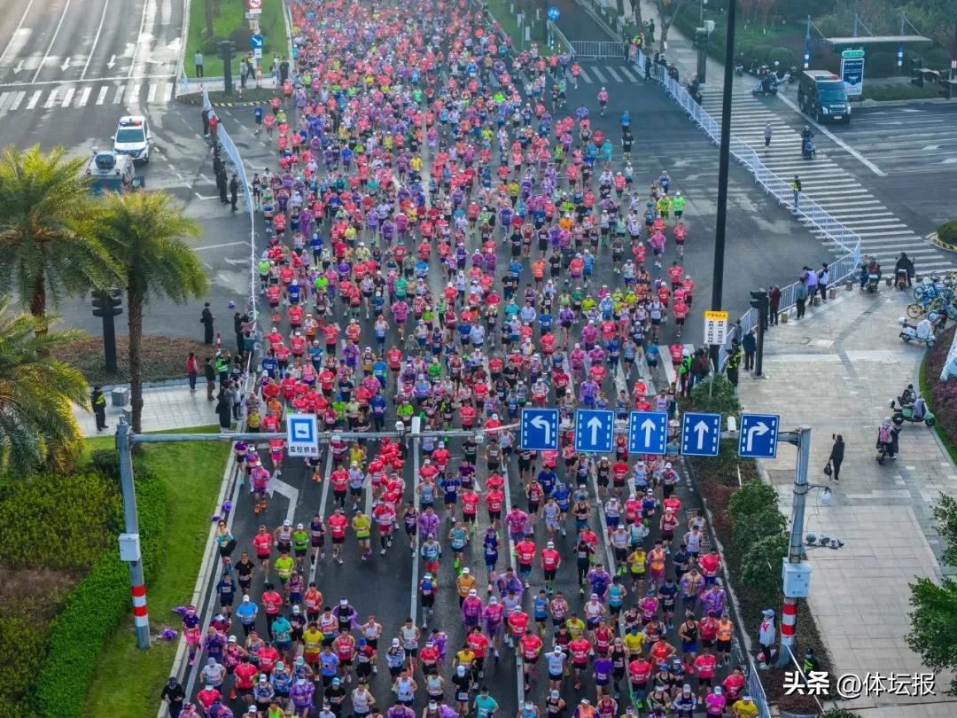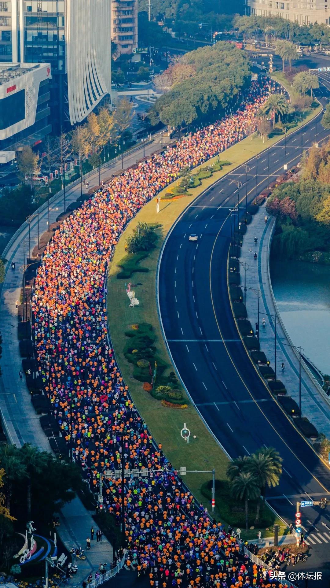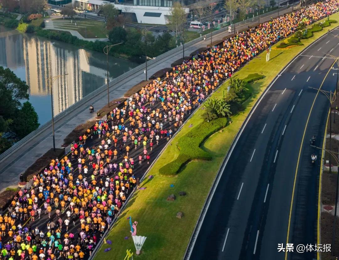 上午7:30,隨着發令槍響,參加馬拉松比賽的5000名選手從市區世紀廣場出發,7:45,參加半程馬拉松的12000人再出發,他們奮勇向前,奔向終點溫州國際會展中心。