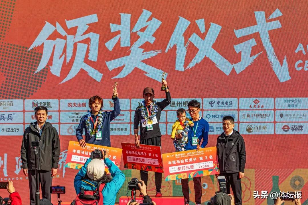 男子半馬亞軍被來自溫州樂清的陸朝曉奪得,他的成績是1小時09分02秒,今年22歲的他是樂清虹橋人,目前在杭州做餐飲生意。對於亞軍,他並不滿意,因爲他的個人最好成績是1小時07分。季軍獲得者是來自遼寧朝陽的郝宏鵬,成績是1小時09分27秒,他是溫州職業技術學院的體育老師,來溫工作多年,頒獎臺上,他抱着剛滿11個月的女兒一起領獎。