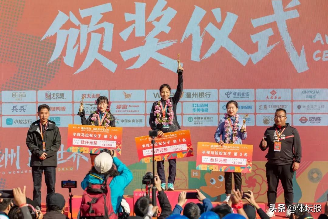 來自杭州的唐曉芬以1小時18分45秒的成績榮獲女子半馬亞軍,來自溫州樂清的姜樂婉以1小時23分55秒的成績榮獲季軍。今年31歲的姜樂婉是樂清虹橋人,本職工作是一名羽毛球教練,利用業餘時間跑馬,此前多次參加溫馬,這是她第一次站上領獎臺。“這次是我今年發揮最好的一次,已經挺滿意的,但這個成績還沒有刷新PB(個人最好成績),我的最好成績是120(1小時20分)。”