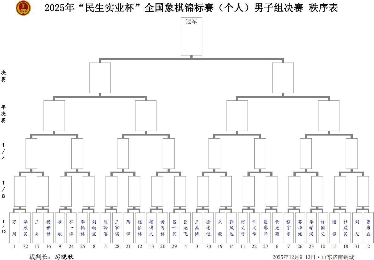 2025年全國象棋個人賽的大戰,在山東濟南鋼城,結束小組賽階段的全部爭鬥,三十二個男子小組,十六個女子小組的晉級名單,全線產生。