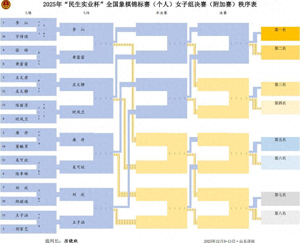 女子8進4對陣,唐丹大戰吳可欣,劉歡對王子涵,李沁VS黃蕾蕾,時鳳蘭對左文靜。