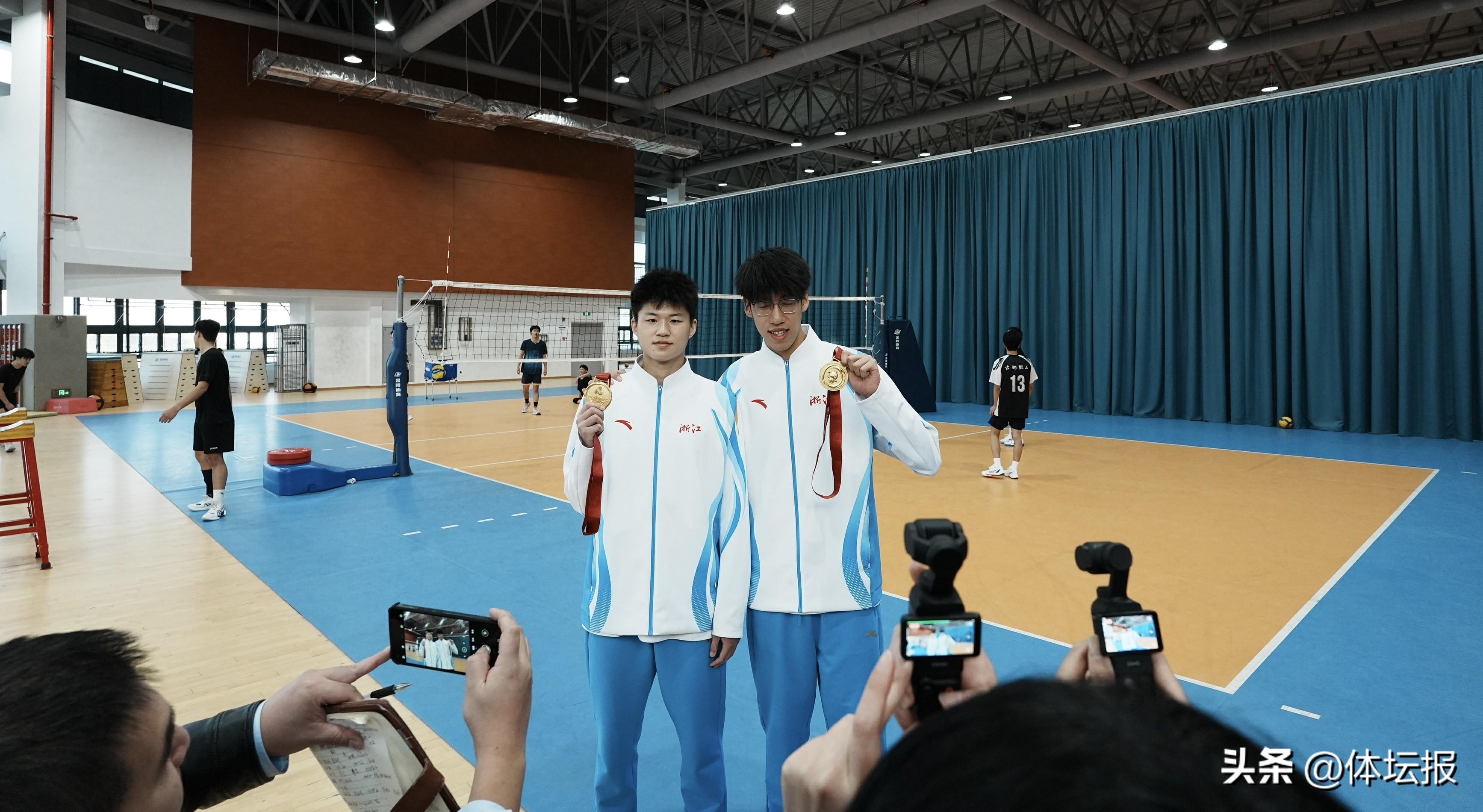 俞覺敏在採訪中分享了紹興排球訓練在比賽成績、學生專項及文化水平、單招單考、人才輸送等成果,以及在訓練管理中對女排精神的踐行。2025全運會男排U18組冠軍隊員張韻知、U20組隊員冠軍段沂松兩位年輕運動員則用青春視角詮釋着體育的力量,他們表示,下一步將全力衝擊2025-2026男排超級聯賽,在紹興家門口的賽場上書寫新輝煌,並寄語學弟學妹“不負心中夢想,腳踏實地,以熱愛可抵歲月漫長”。