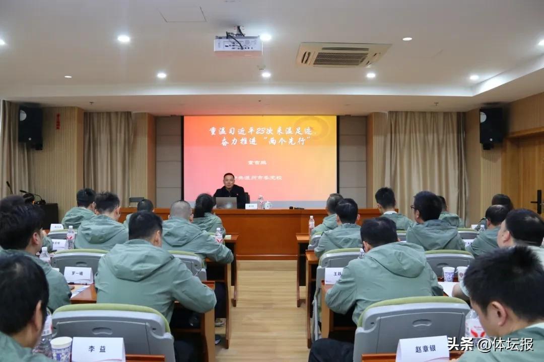 浙江省委黨校馬克思主義理論研究會常務理事童吉鵬在《重溫習近平23次來溫足跡 奮力推進“兩個先行”》課程中,播放宣傳紀錄片,鼓勵築牢黨建引領根基、深悟總書記來溫精神內涵,牢記總書記對溫州的殷殷囑託。