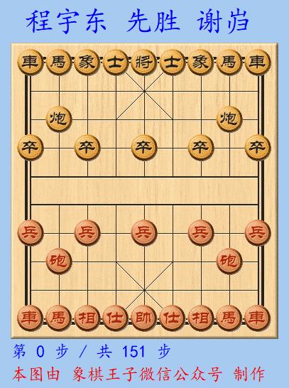 雙方慢棋、快棋均成平,加賽五分鐘超快棋,程宇東執先,使出仙人指路陣,謝巋應以對挺卒。