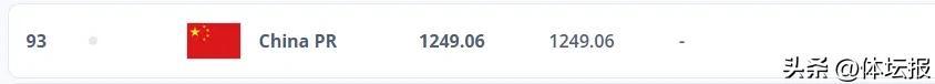 目前中國男足世界排名爲第93位
