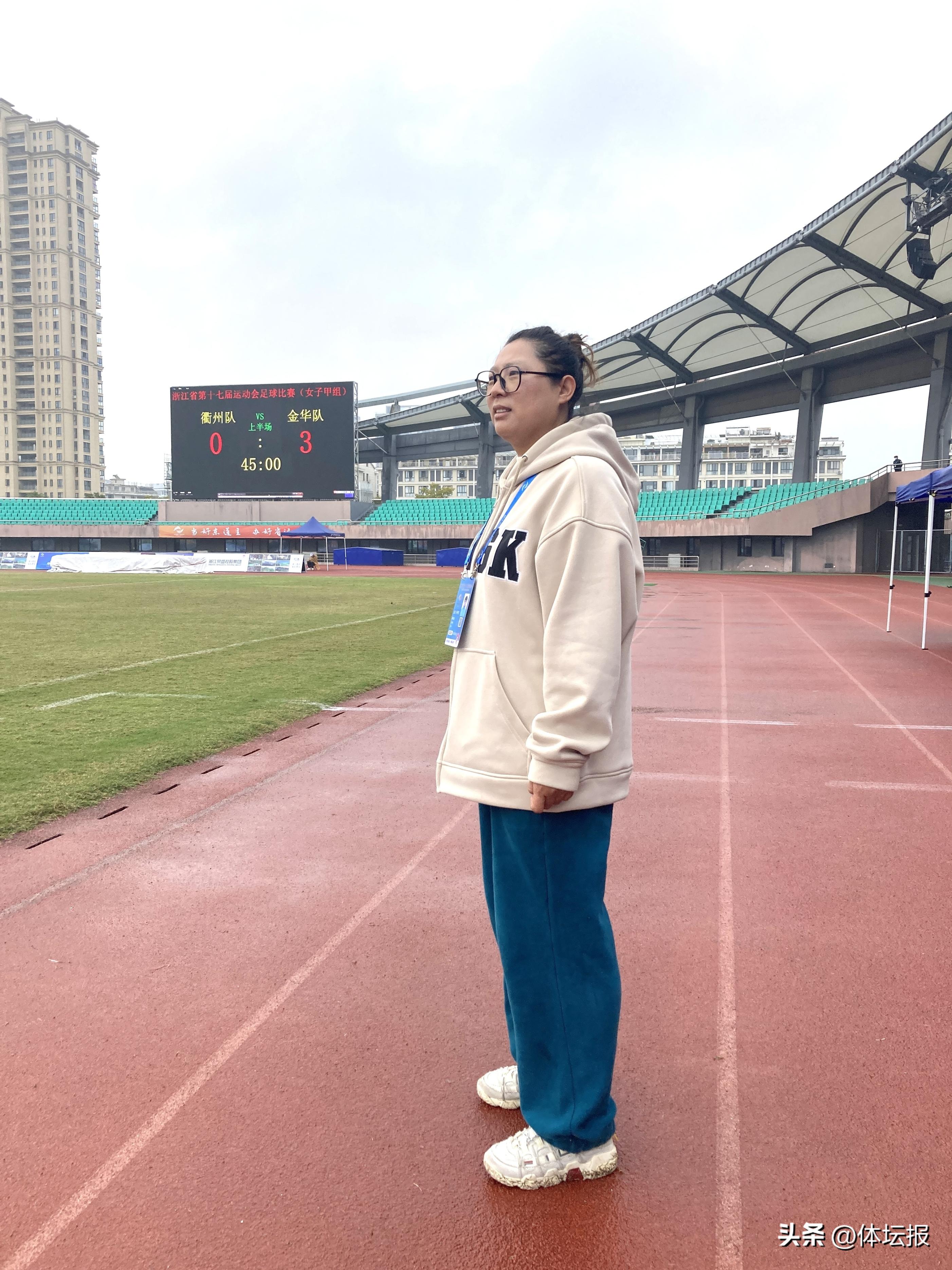 這支金華隊的主教練陳巧紅,也是浦江少體校女子足球隊的主教練,她爲浦江女足已經奉獻了23年。“我是浦江人,原先是省隊女足隊員,2000年退役後回到當地,浦江女子足球就是從這個時候開始的。”陳巧紅是浦江女足的第一任教練,一直幹到現在。23年走過來,陳教練坦言開始階段比較艱辛:“一是隊員少,二是教練少,大事小情都得自己來。”憑着熱血和責任,她所帶的浦江女足逐漸完整和穩定,是金華地區“市隊縣辦”的隊伍。今年,她們是第六次參加省運會。