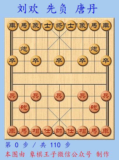 兩人之戰,劉歡執先手擺出五七炮直橫車對進三兵對屏風馬進3卒的流行陣勢,唐丹應以補右路士象的戰法。