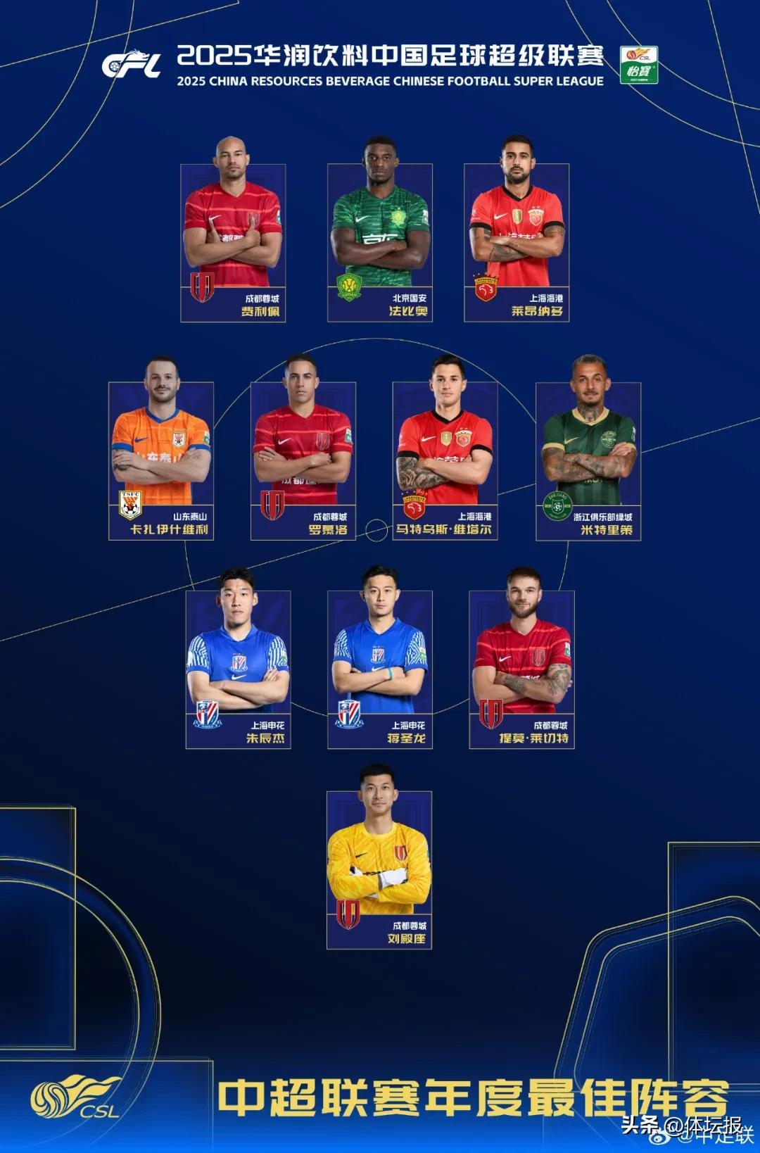 中場:卡扎伊什維利(山東泰山)、羅慕洛(成都蓉城)、馬特烏斯·維塔爾(上海海港)、米特里策(浙江俱樂部綠城)