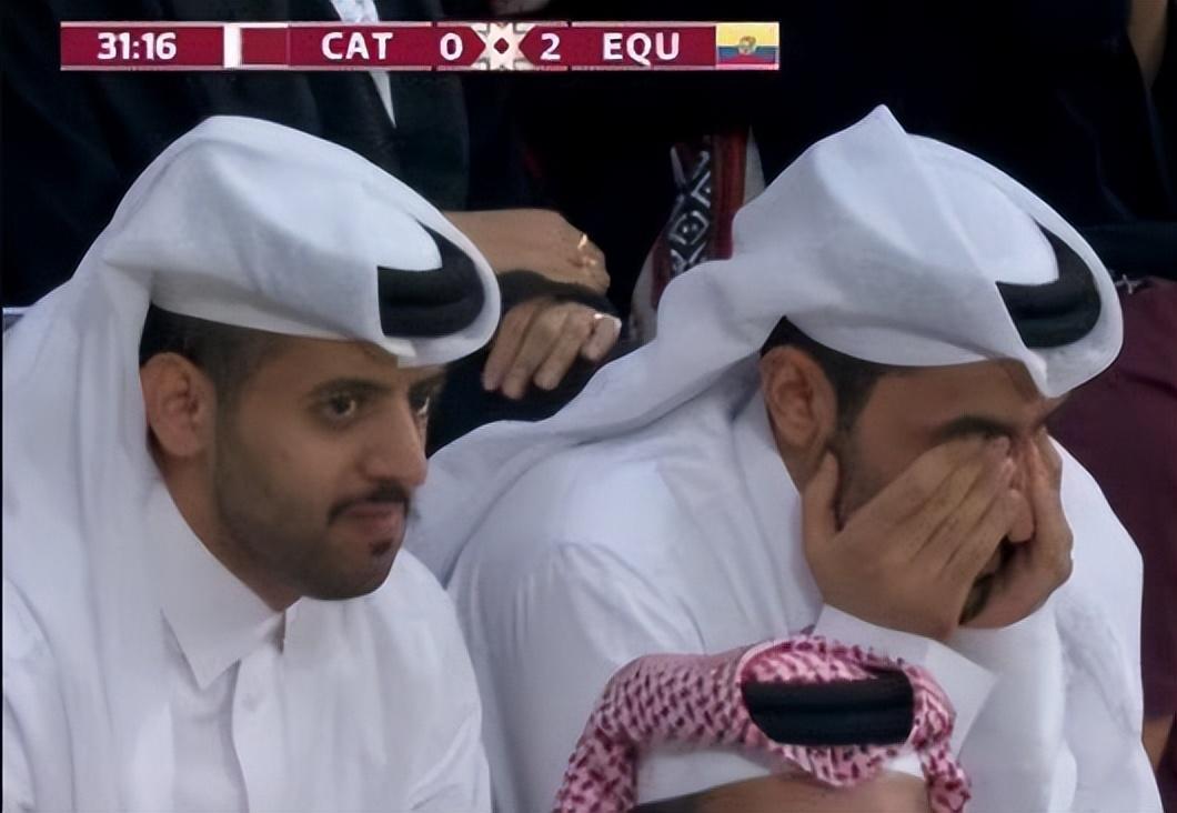 上半場傷停補時的最後一秒鐘,哈桑-海多斯邊路傳中,阿里頭球攻門頂偏,要知道,這居然是卡塔爾在對方禁區的第一次觸球,作爲東道主來說,確實有點“丟人”,看臺上有不少帶着白頭紗的卡塔爾“土豪”球迷,也在捂眼嘆息,一臉失望。