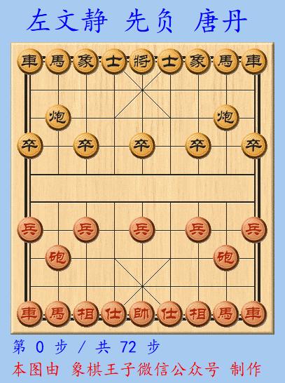 唐丹談到決戰的棋,我倆的慢棋,我運氣不錯的抽到了先手,但下了一盤和棋,加賽快棋,左文靜用了自己拿手的飛相局,我走了常見的士角炮。