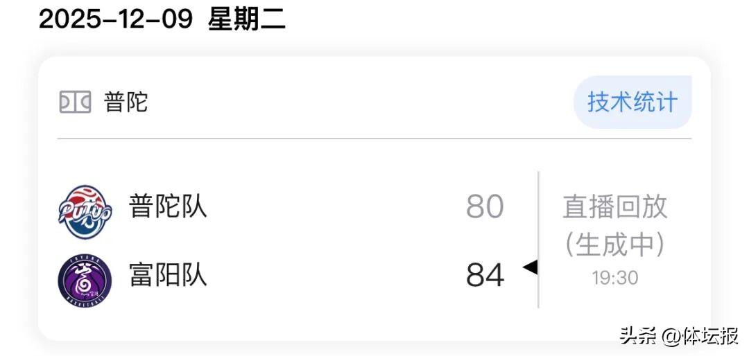 12月9日晚,浙BA城市爭霸賽第十八輪,普陀隊主場迎戰富陽隊。本場比賽,普陀隊表現精彩,將B組頭名富陽隊逼到了最後一刻,直到最後17秒內才分出勝負。最終,富陽隊以84:80戰勝普陀隊。